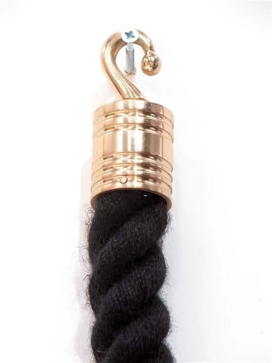 Black rope section with brass hooks each end, for connection to a stanchion (which can be hired separately).