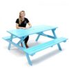 Blue Park Picnic Bench to hire This park-style picnic bench would be a great way to bring the outdoors indoors at your event This prop offers both alternative seating and a place for your guests to enjoy some picnic-themed food Mix the colours for a rainbow look! Please note that these picnic tables are delivered in flat pack form for self-assembly.