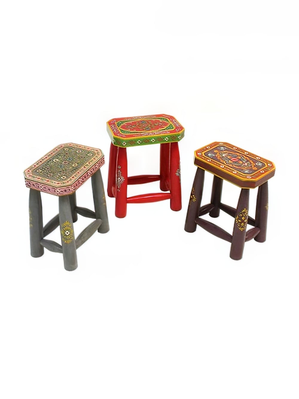 Bohemian Stool to hire. This beautiful stool is created in a Kashmiri style and is hand painted in grey with a floral design in pink and green. It’s made from wood with tapering legs in a traditional folk shape and would be perfect for so many themes from Festival to Fairytale and Children’s to Carnival; in fact the options are endless!
