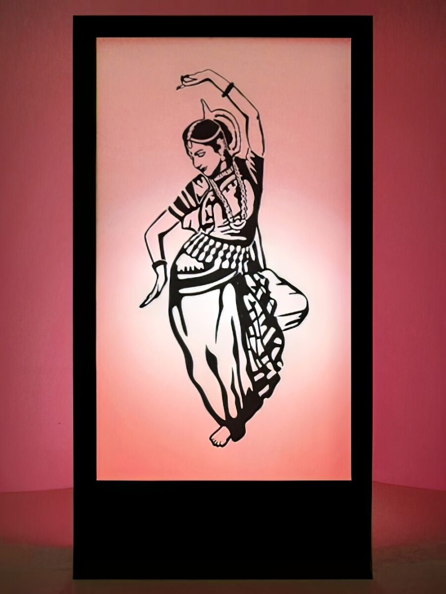 Bollywood Silhouette Panel to hire. This is a lit silhoutte panel depicting traditional Indian dancing.