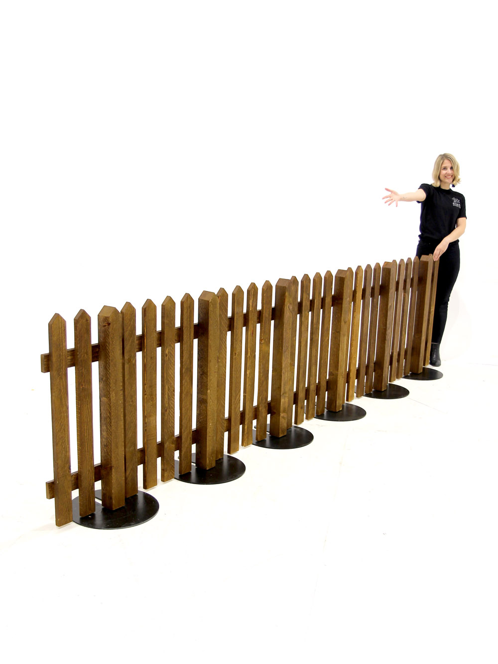 Brown Picket Fence Section to hire. Our temporary picket fence sections are a lovely practical solution for sectioning off areas at events. Our ย Brown Picket Fence Section is freestanding and has a rustic brown finish, making them a perfect addition to any English Country Garden or Farm themed events.