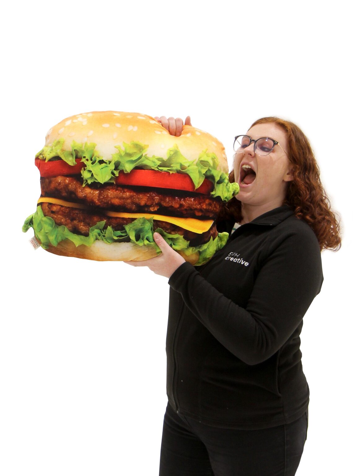 Burger Cushion to hire. This novelty cushion would be great in an American Diner themed setting, or at a Kids Party.