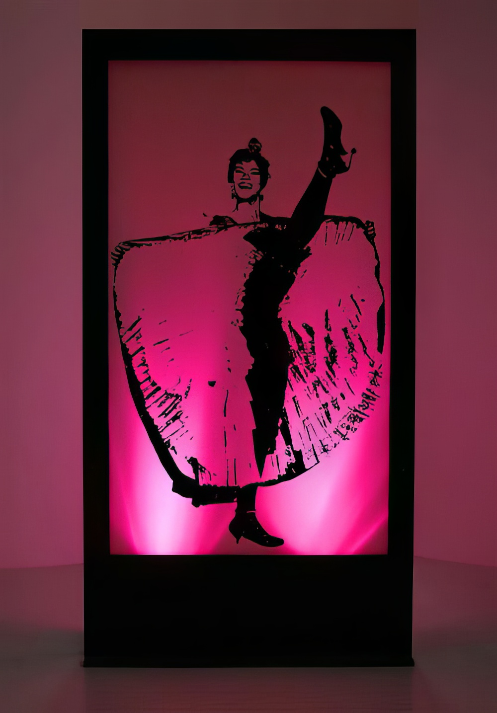 Cancan Dancer Silhouette Panel to hire. This is a back-lit silhoutte panel depicting an image of Cancan dancer. This, and all our other Parisian Burlesque ย themed props to hire, will make great additons to any Parisian Burlesque or Cabaret ย themed party or event. Please note that the actual lighting colour may vary from that shown. The prop is supplied with a colour changing ย Parcan light that has a 1m lead and it is the responsibility of the client to provide extension leads if longer leads are required. The price ย quoted includes one supplied light.