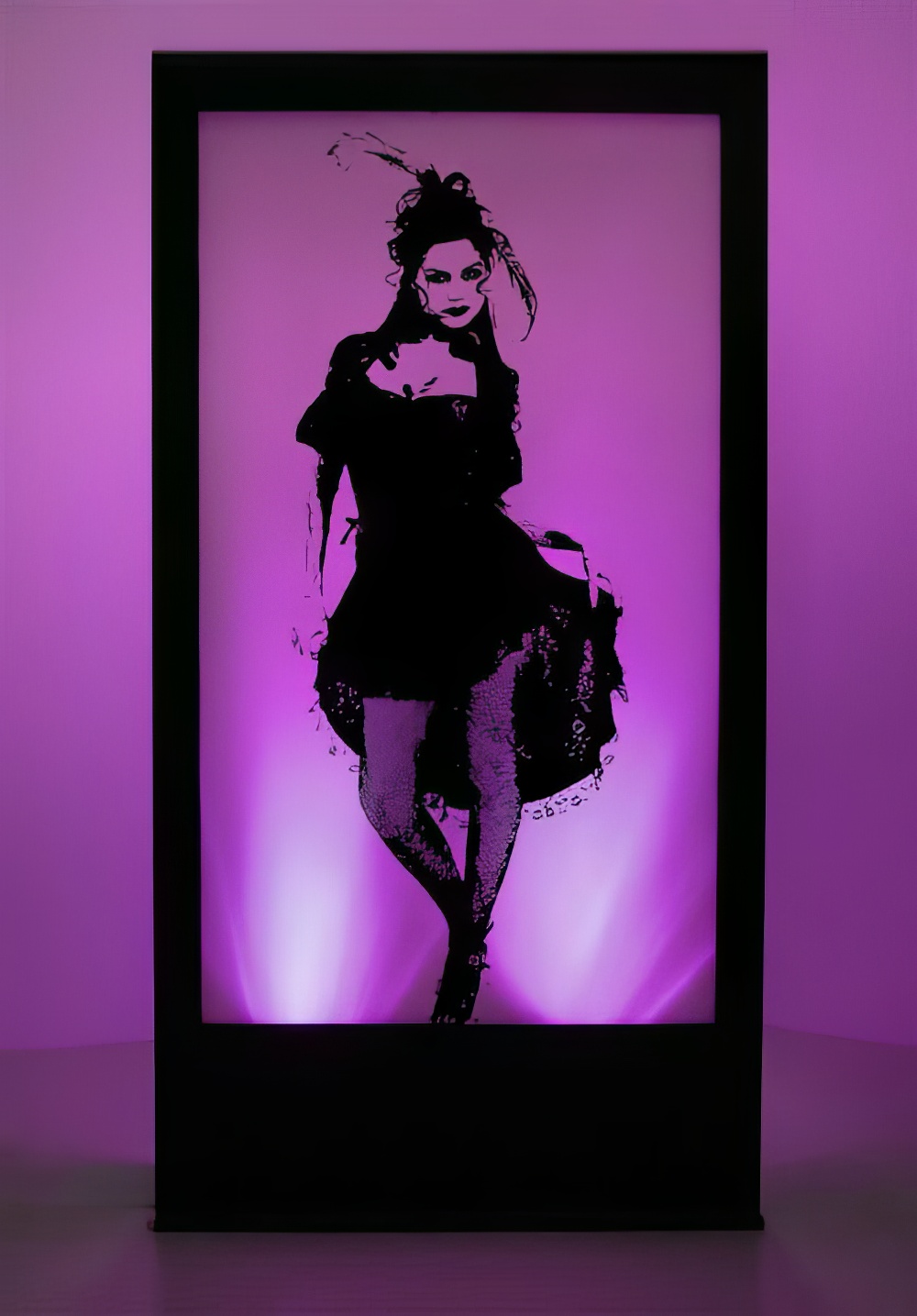 Cancan Dancer Silhouette Panel to hire. This is a back-lit silhoutte panel depicting an image of Cancan dancer. This, and all our other Parisian Burlesque ย themed props to hire, will make great additons to any Parisian Burlesque or Cabaret ย themed party or event. Please note that the actual lighting colour may vary from that shown. The prop is supplied with a colour changing ย Parcan light that has a 1m lead and it is the responsibility of the client to provide extension leads if longer leads are required. The price ย quoted includes one supplied light.