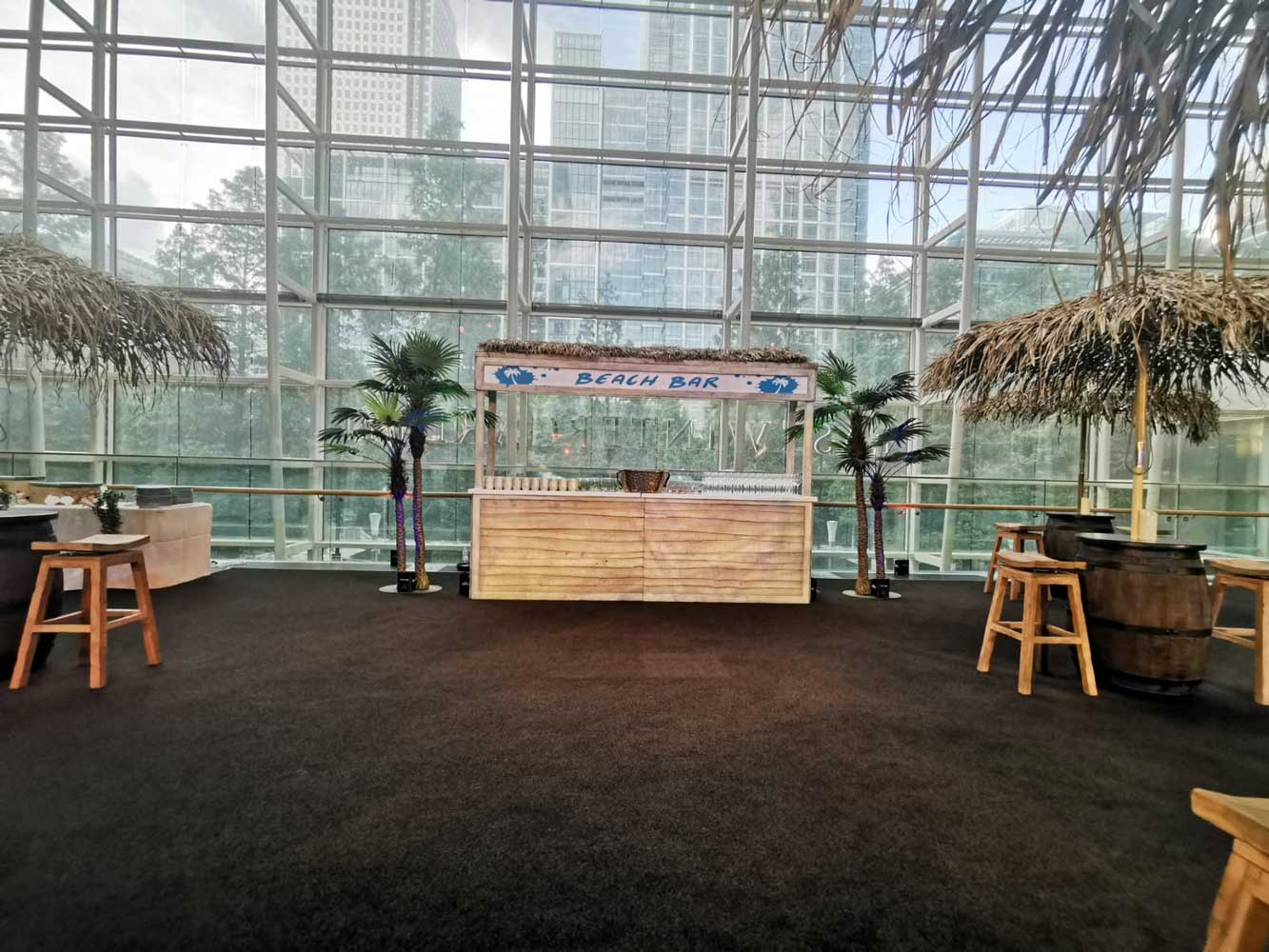 Check out our Caribbean Beach Bar! Could this be any more perfect for a Caribbean themed event? ย Boy this item really sets the scene. Manufactured to look like it’s made from sun-bleached driftwood, ย we have built it ย with ย loads of serving space and room underneath to hide your fridges.