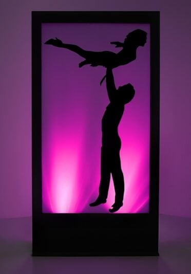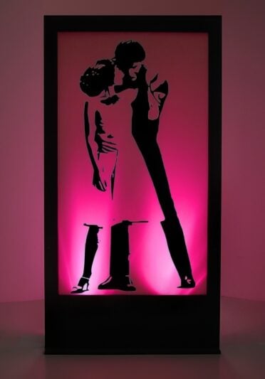 Lit silhouette panel depicting Casablanca duo Humphrey Bogart and Ingrid Bergman. Actual lighting colour supplied may vary from that depicted. All Parcan lights have a 1m lead and it is the responsibility of the client to provide extension leads if longer leads are required. Price quoted includes one supplied light.