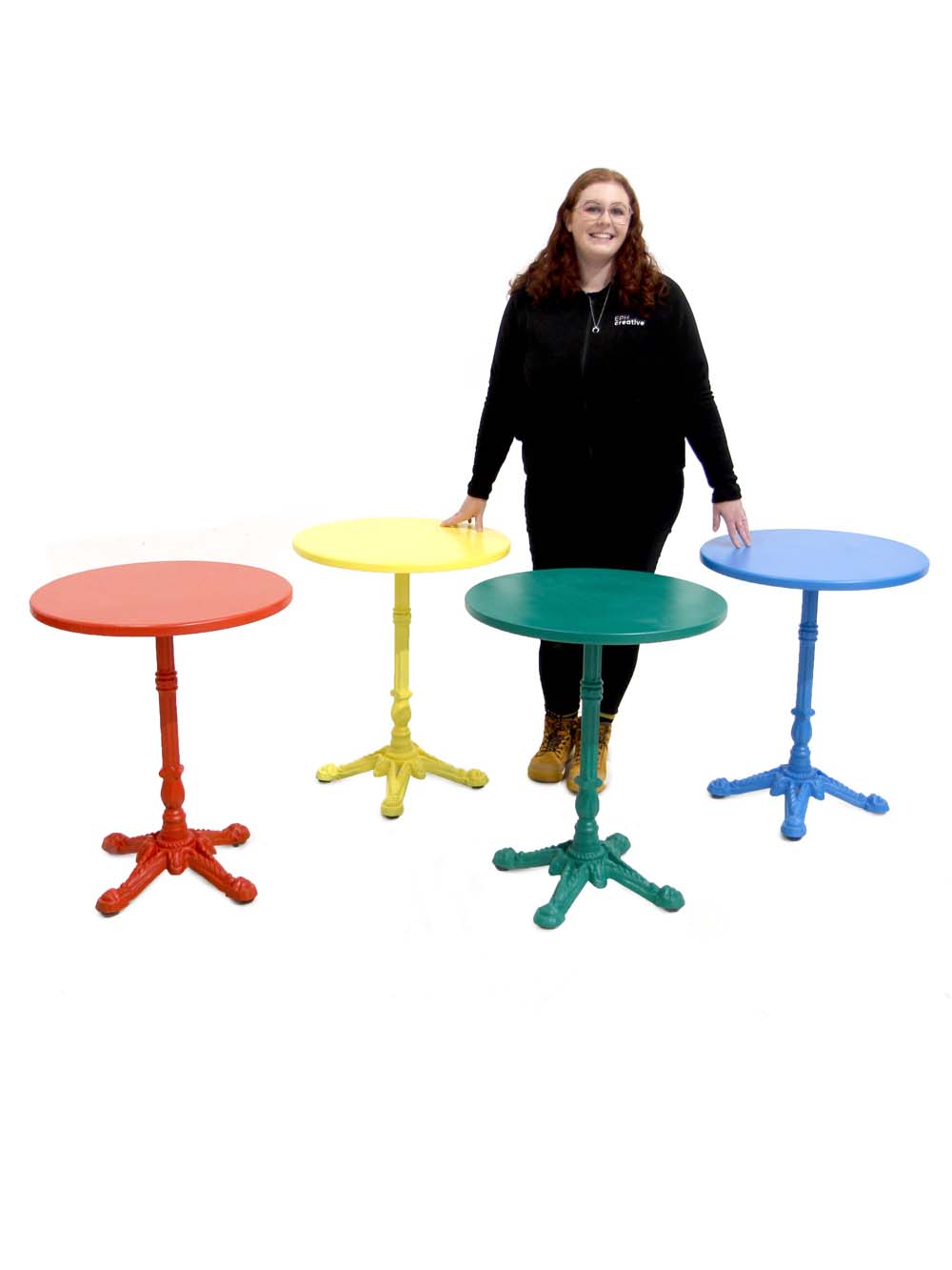 Brightly Coloured Cast Iron Side Table – set of 4 to hire. These brightly coloured Cast Iron Side Tables would work perfectly at any Circus or Carnival themed party or event.