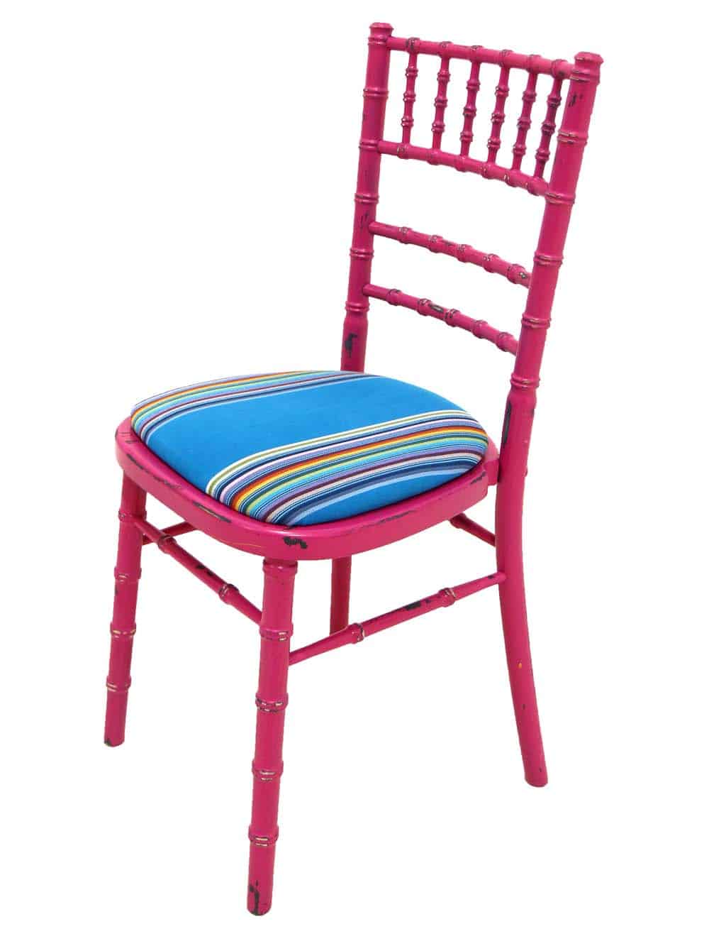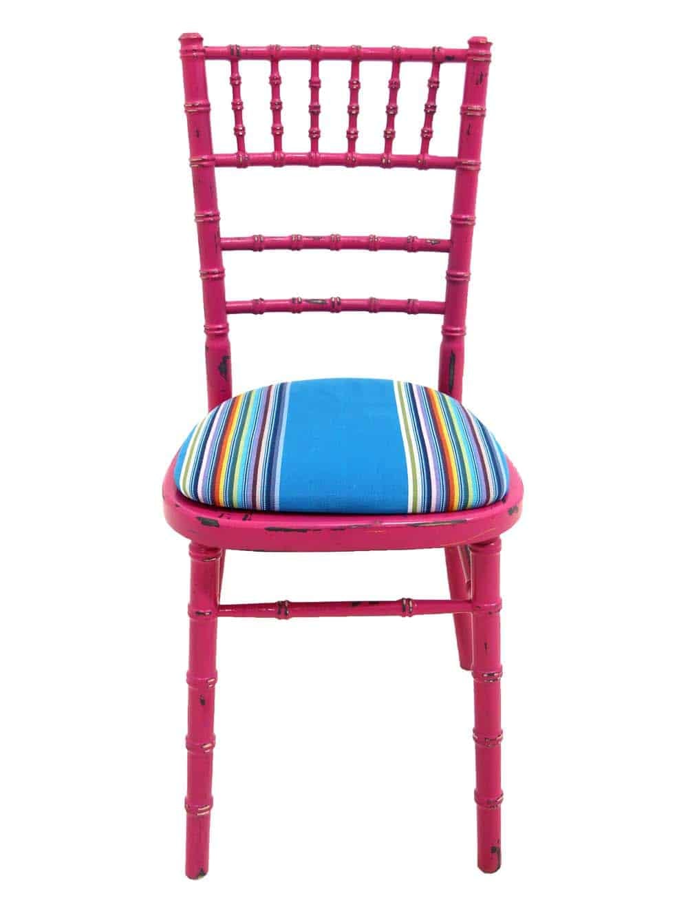 Chiavari Chair – Distressed Bright Pink + Blue Striped Seat Pad