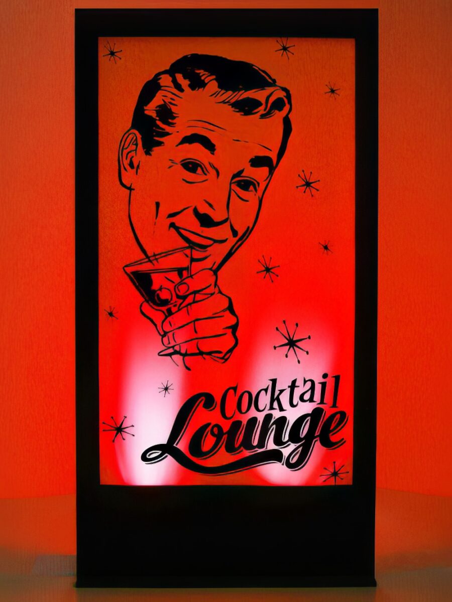 Iconic 1950’s style American Cocktail Lounge Diner Silhouette Panel for hire. All our Silhouette Panel Props are freestanding and are supplied with 1 x LED Parcan light. The Light can be set to a number of different colours so you can match it into your event colour schemes.