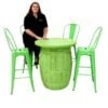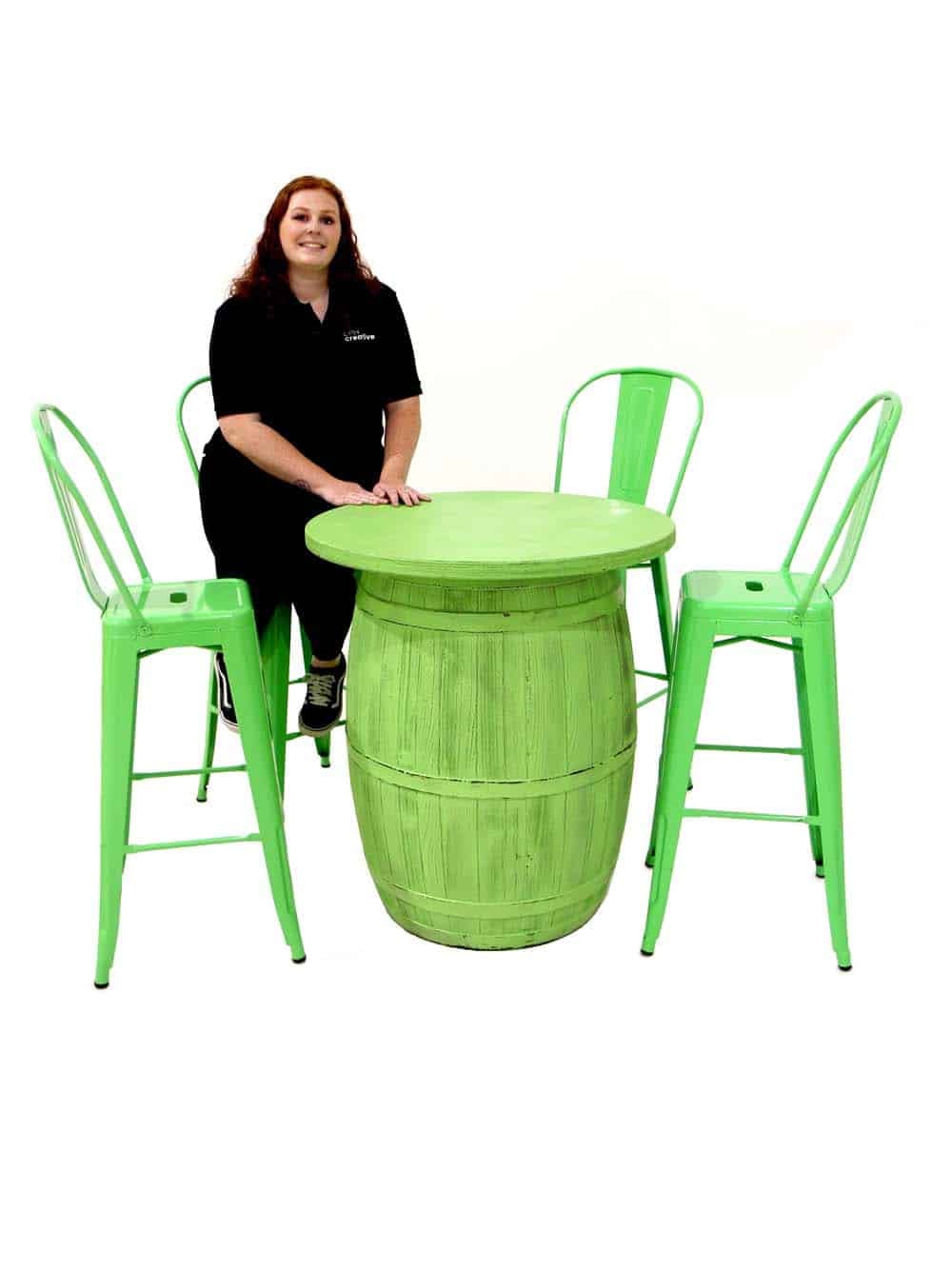 Coloured Rustic Barrel Poseur Table + Metal Stools (Green)