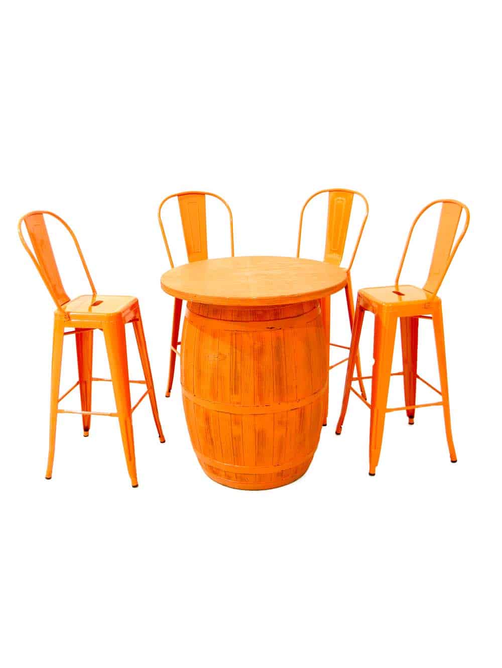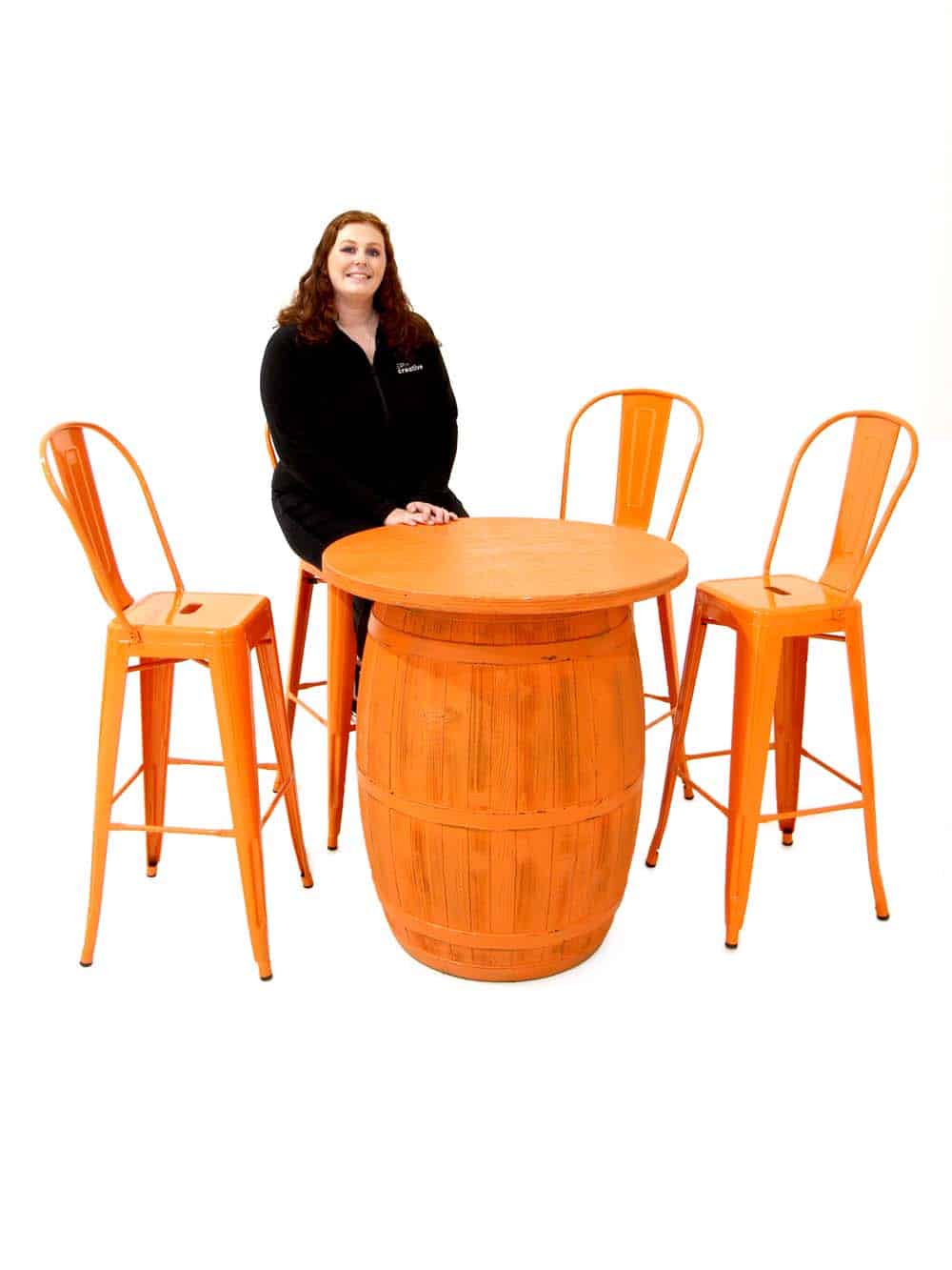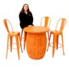 Coloured Rustic Barrel Poseur Table + Metal Stools (Orange)