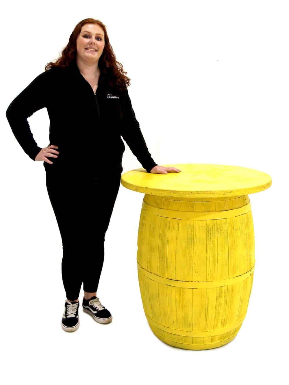 Coloured Rustic Barrel Poseur Table (Yellow)