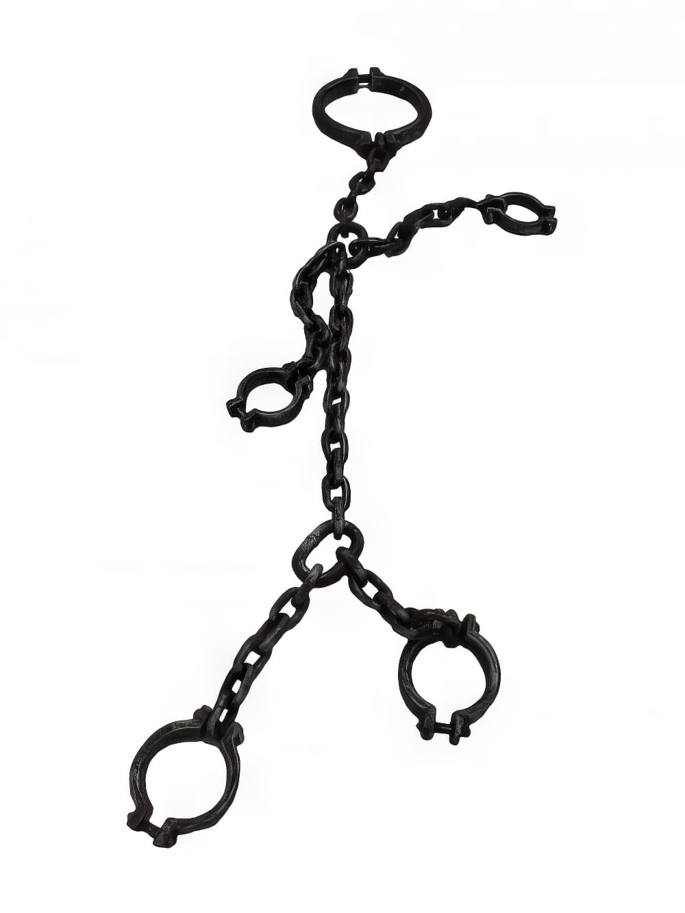 Convict Chain for hire. This artificial metal-effect neck, wrist & ankle chain (prop only!) is one of a number of smaller items that will really help to finish off the styling for your Halloween or Hell themed event or party.