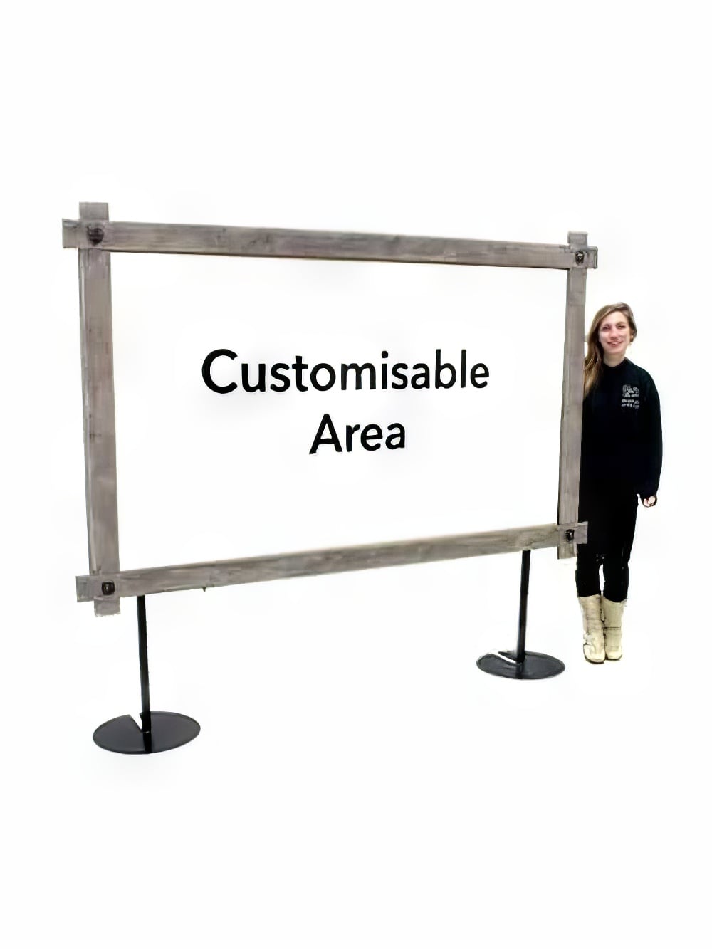 Customised Large Rustic Frame with Custom insert for hire. This is a superbly versatile prop that you can customise for just about any theme you want. ย It can be used in a landscape or portrait orientation, as pictured opposite. The price quoted includes the cost of the customisation, as long as you supply print ready artwork. ย We supply a printed insert made from 2mm thick white foamed board. This slots into the frame from the side. We also offer this customisable black frame in Small and Medium. This product is also available as a simple black frame without the Rustic Outer Frame. We can create the customised artwork for your event. We have a highly skilled team of graphic designers who can help you with the customisation of our Customised Large Rustic Frame. We can design customised graphics to suit your event theme. Contact us for more details. Alternatively you can customise this product yourself then we can take care of the printing for you, we just need your artwork. We offer downloadable artwork templates to help you create print ready artwork, accessible via the download links below. Contact us for more details. Alternatively you can customise this product yourself then we can take care of the printing for you, we just need your artwork. We offer downloadable artwork templates to help you create print ready artwork, accessible via the download links below.