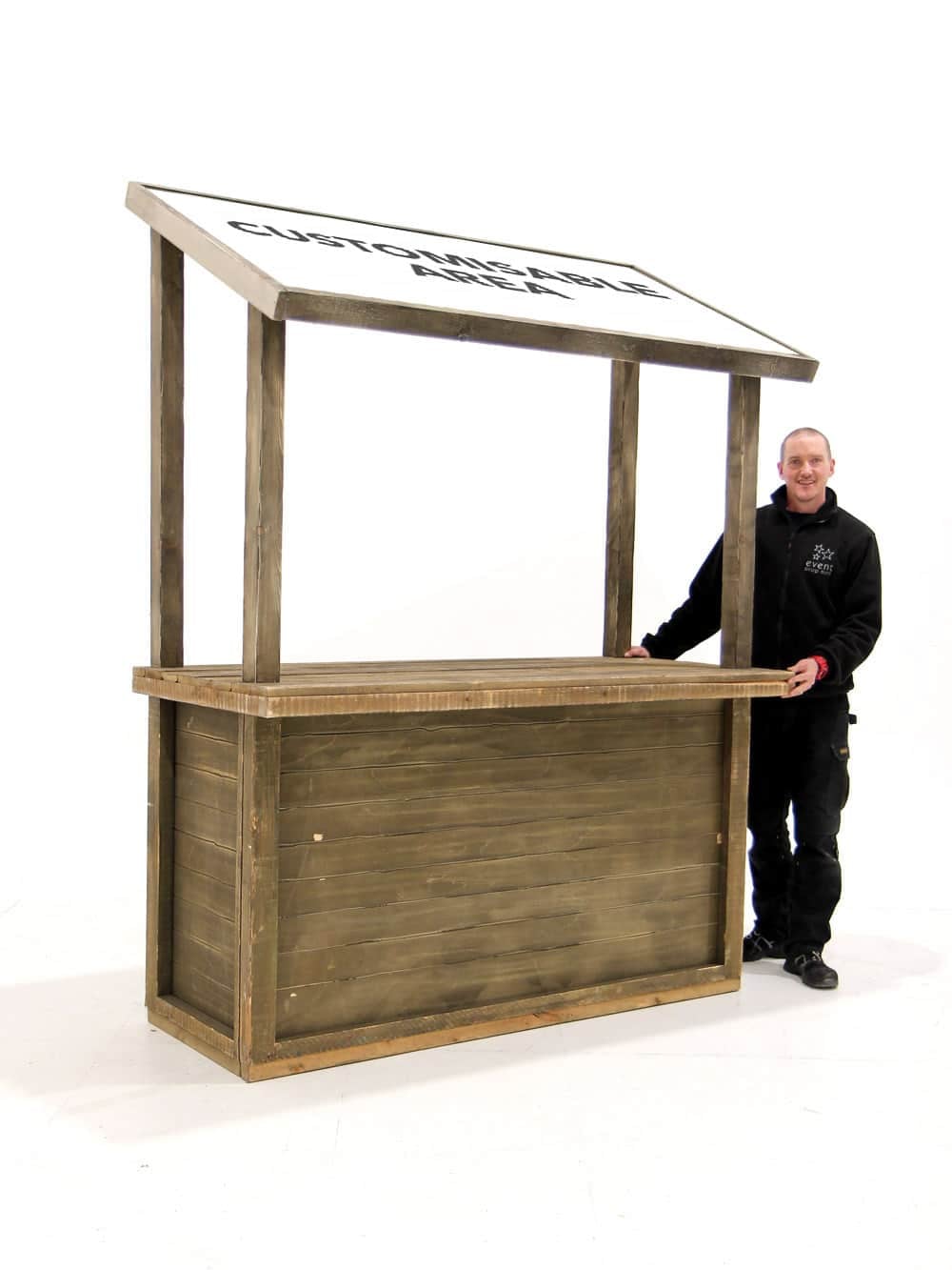 Customised Rustic Wooden Food Stall with Roof and a Custom Printed Roof Panel. We can create the customised artwork for your event. We have a highly skilled team of graphic designers who can help you with the customisation of our Rustic Food Stall. We can design customised graphics to suit your event theme. ย Contact us for more details. Alternatively you can customise this product yourself then we can take care of the printing for you, we just need your artwork. We offer downloadable artwork templates to help you create print ready artwork, accessible via the download links below. Alternatively you can customise this product yourself then we can take care of the printing for you, we just need your artwork. We offer downloadable artwork templates to help you create print ready artwork, accessible via the download links below.
