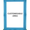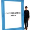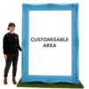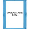 Customised Giant Blue Frame for hire. We supply with the frame a laminated print on vinyl applied to 5mm thick white foamed board. The printed insert fits into the decorative frame from the back and is held in place with clips. The ornate frame sits upright on a supporting black base. This size of frame is also available in many other colours! We also have smaller customisable ornate frames. We can create the customised artwork for your event. We have a highly skilled team of graphic designers who can help you with the customisation of our large ornate frames. We can design customised graphics to suit your event theme. ย Contact us for more details. Alternatively you can customise this product yourself then we can take care of the printing for you, we just need your artwork. We offer downloadable artwork templates to help you create print ready artwork, accessible via the download links below.