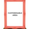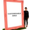 Customised Giant Pink Frame for hire. We supply with the frame a laminated print on vinyl applied to 5mm thick white foamed board. The printed insert fits into the decorative frame from the back and is held in place with clips. The ornate frame sits upright on a supporting black base. This size of frame is also available in many other colours! We also have smaller customisable ornate frames. We can create the customised artwork for your event. We have a highly skilled team of graphic designers who can help you with the customisation of our large ornate frames. We can design customised graphics to suit your event theme. ย Contact us for more details. Alternatively you can customise this product yourself then we can take care of the printing for you, we just need your artwork. We offer downloadable artwork templates to help you create print ready artwork, accessible via the download links below.