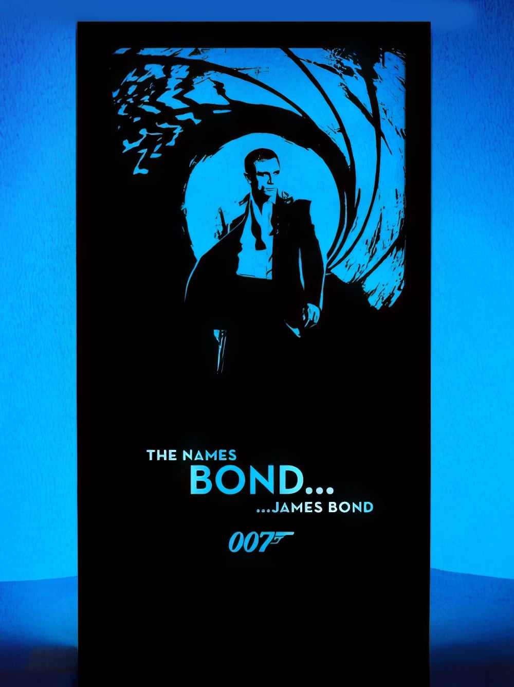 Daniel Craig Skyfall silhouette panel in typical Bond pose. This and all our other Bond 007 props will make great additions to your themed decoration at your 007 bond themed event party night. All of our silhouette panels come supplied with lighting. Lighting colour may vary from that shown.