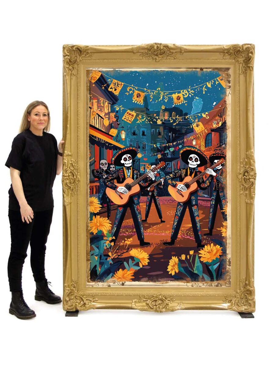 Day of the Dead Themed Print in Gold Frame #13. Great theming for Day of the Dead events. Check out the full range of Halloween theme prints in giant frames.