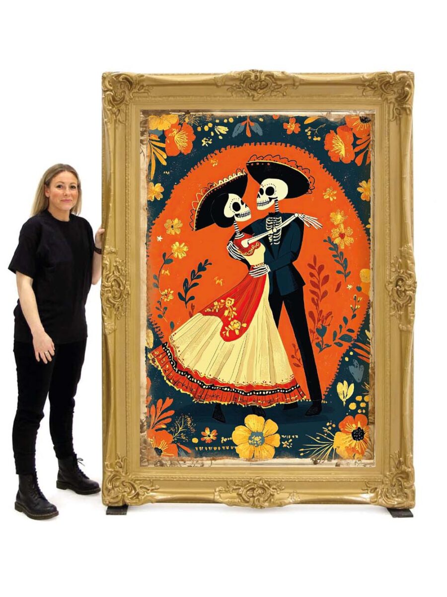 Dancing Skeletons Day of the Dead Themed Print in Gold Frame #6. Great theming for Day of the Dead events. Check out the full range of Halloween theme prints in giant frames.