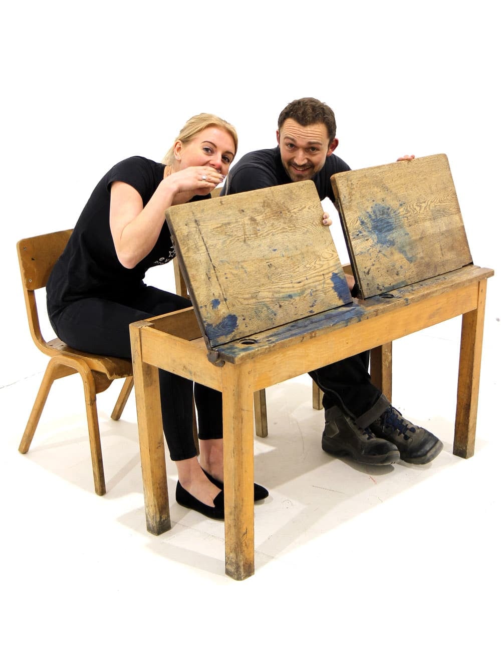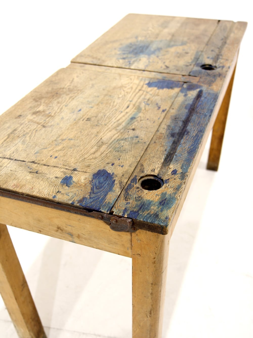 Old fashioned Double School Desk to hire. This is the perfect furniture hire for any Back to School themed event or party. We also have a single desk and desk with chair option. Please note that dependent ย on the quantities ordered, the design supplied of both the desk and chairs may vary slightly. These are authentic old school desks, complete with graffiti and ink stains.