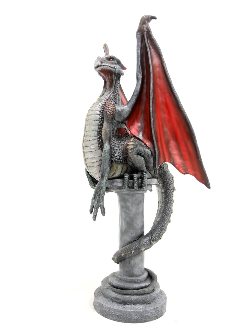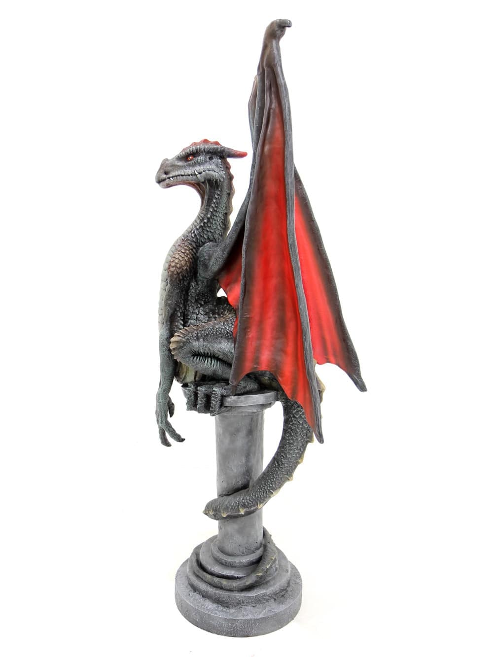 Warning! Do not feed the dragon! If you dare… our stunning Dragon on Plinth is available to hire for your fantasy themed events. This is perfect for Medieval, Fairytale or Game of Thrones inspired themed events. Pair with our Broken Columns, Smoke Machine and Red Wireless Parcan Uplighters to create a showstopping dragon’s lair. An exciting, memorable and fabulous prop; a perfect photo opportunity for the guests attending any event. Our Dragon on Plinth is also available in different colours so you can hire a pair. A great entranceway to any Medieval themed event!