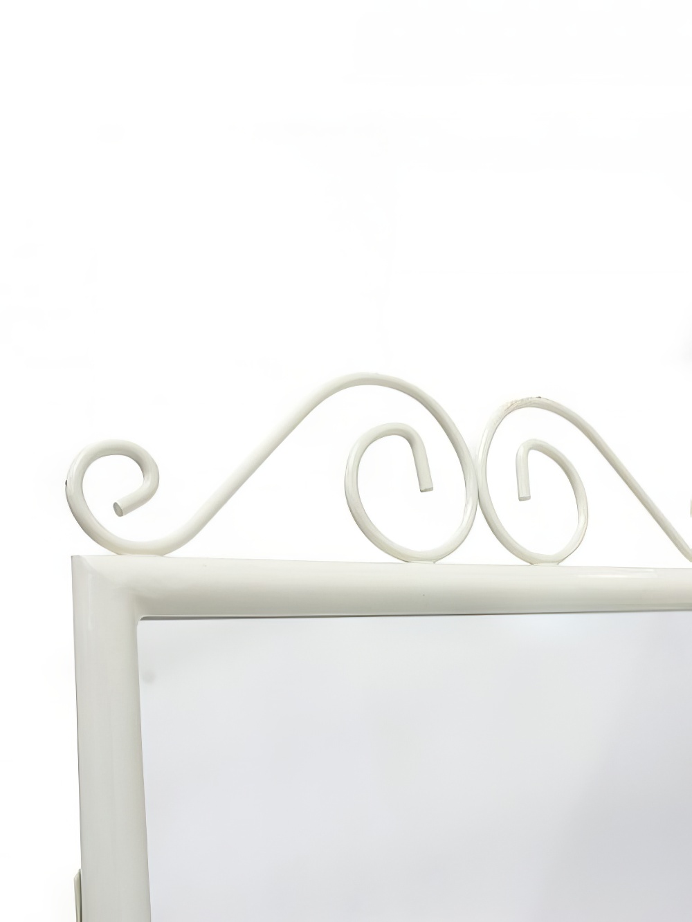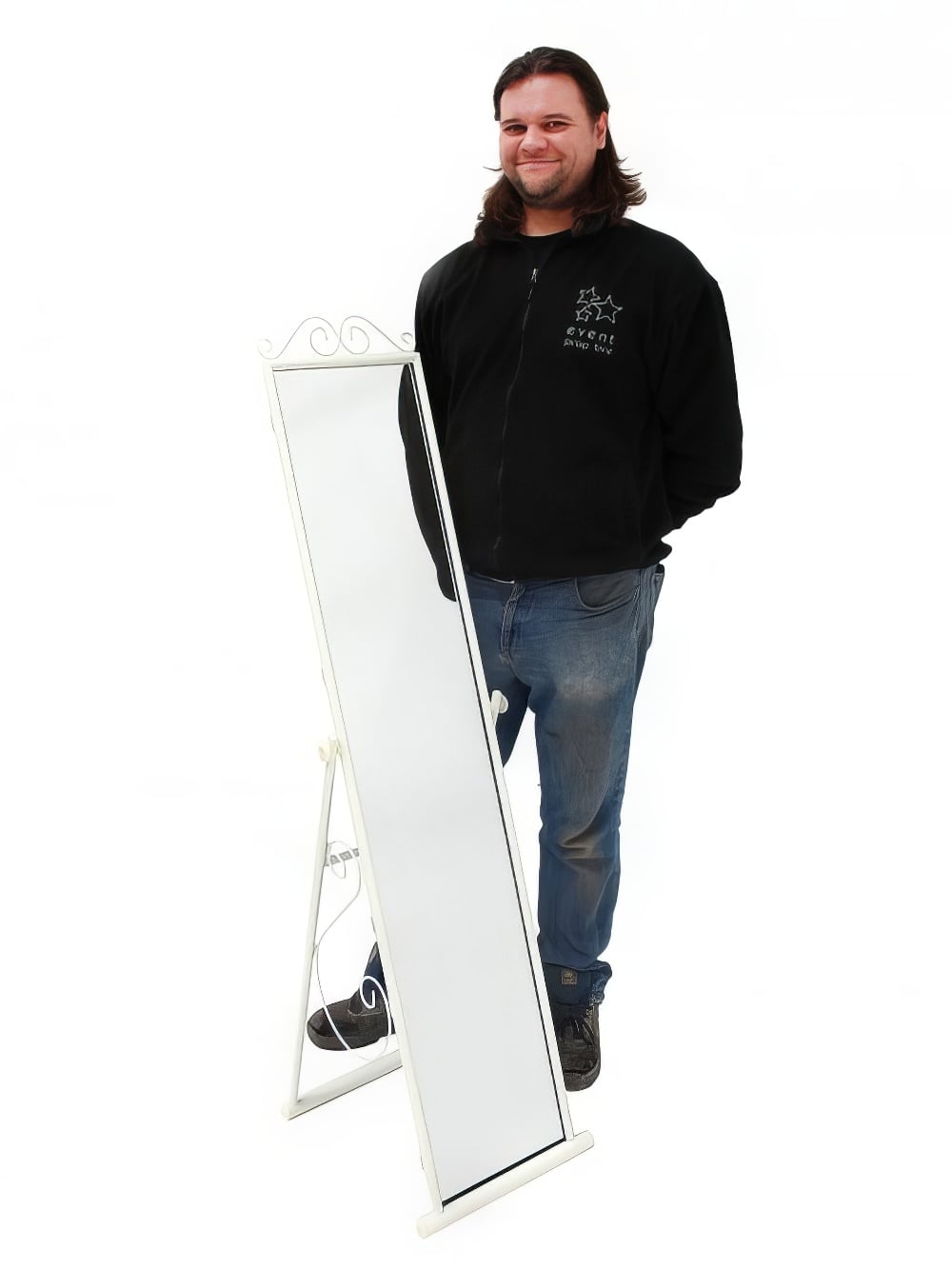 Dressing Room Mirror to hire. This simple and elegant full length white mirror is freestanding and tilts. It could be used across so many different themes. Use it practically behind the scenes or as a positioned furniture item to help create a scene; whether it be a heaven, ice or a fashion themed event or party. Use it practically behind the scenes or as a positioned furniture item to help create a scene; whether it be a heaven, ice or a fashion themed event or party.
