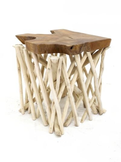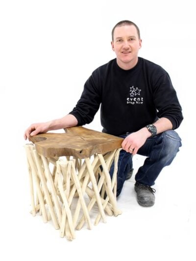 Driftwood Side Table for hire. This is a stunning and unusual piece of furniture that is made up from lots of driftwood style twigs. It would look fantastic across so many different themes, from Mediterranean to Australian, or Rio. We also have a coffee table and stool to match; take a look below ย and at the pictures across.
