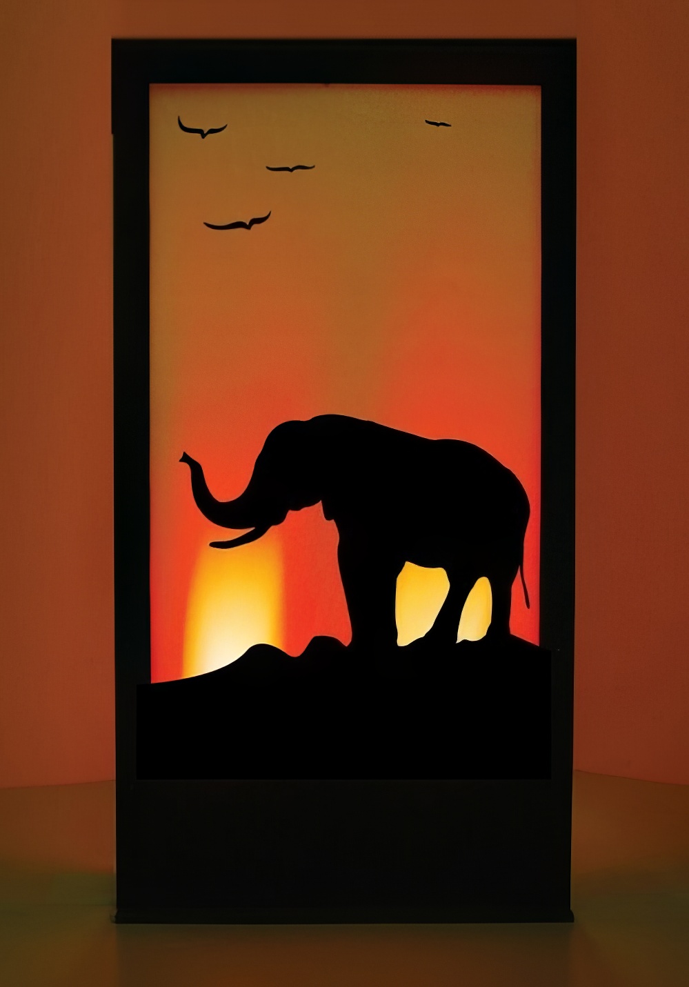 Silhouette Panel depicting a wild african elephant. Perfect for any african themed event party. Actual lighting colour supplied may vary from that shown. All Parcan lights have a 1m lead and it is the responsibility of the client to provide extension leads if longer leads are required.