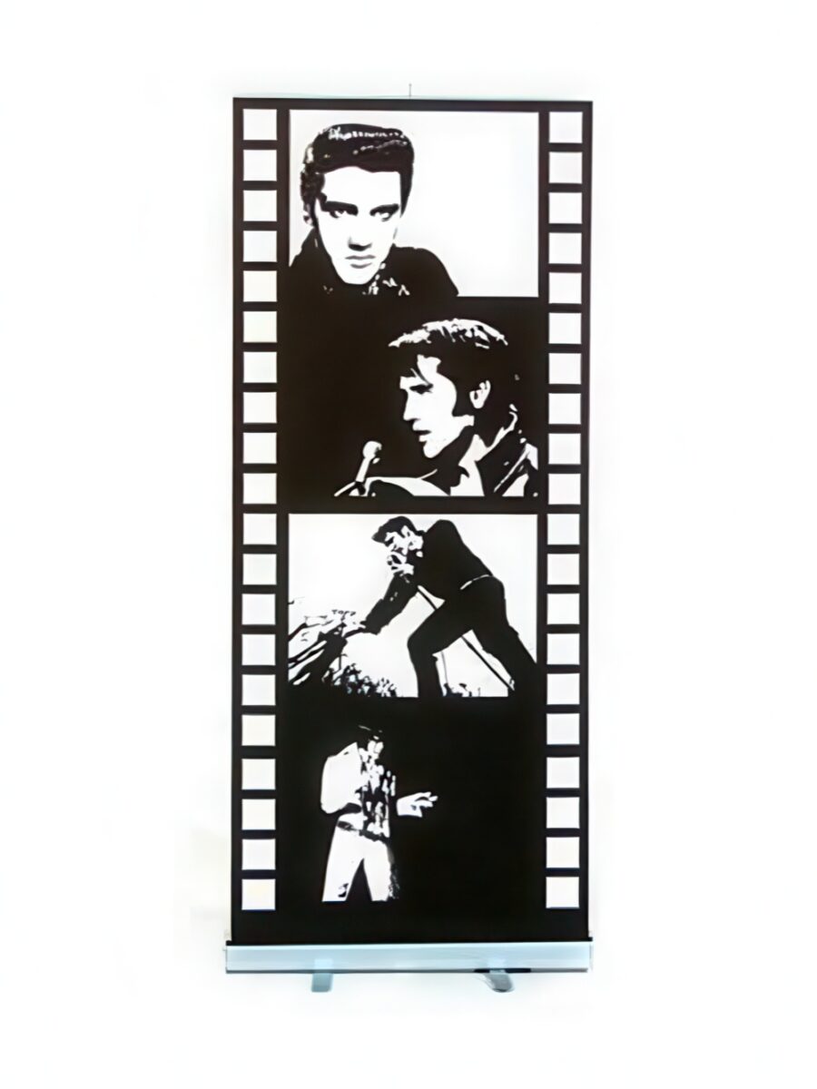 Filmstrip depicting 4 iconic images of The King himself, Elvis. Hire this and you wont have to worry about Elvis leaving the building of your themed event! Hire this and you wont have to worry about Elvis leaving the building of your themed event!