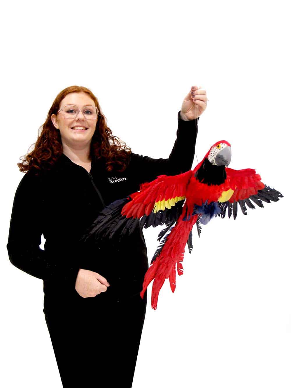 Red Parrot in Flight to hire. This prop would look great at any Pirate, Caribbean or Animal themed party or event.