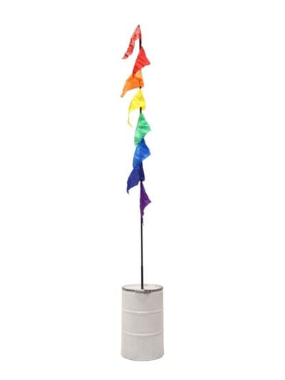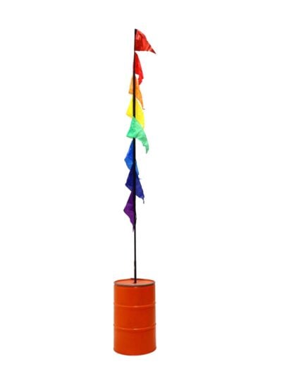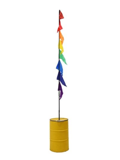 Festival Flag in Steel Drum – Black for hire Want a festival flag but don’t have the grass to anchor it in? We’ve got you covered! Pick one of our colour steel drums and one of our 3.75m festival flags and you’re good to go! Please note, you will need ceiling clearance over 4m if using indoors.