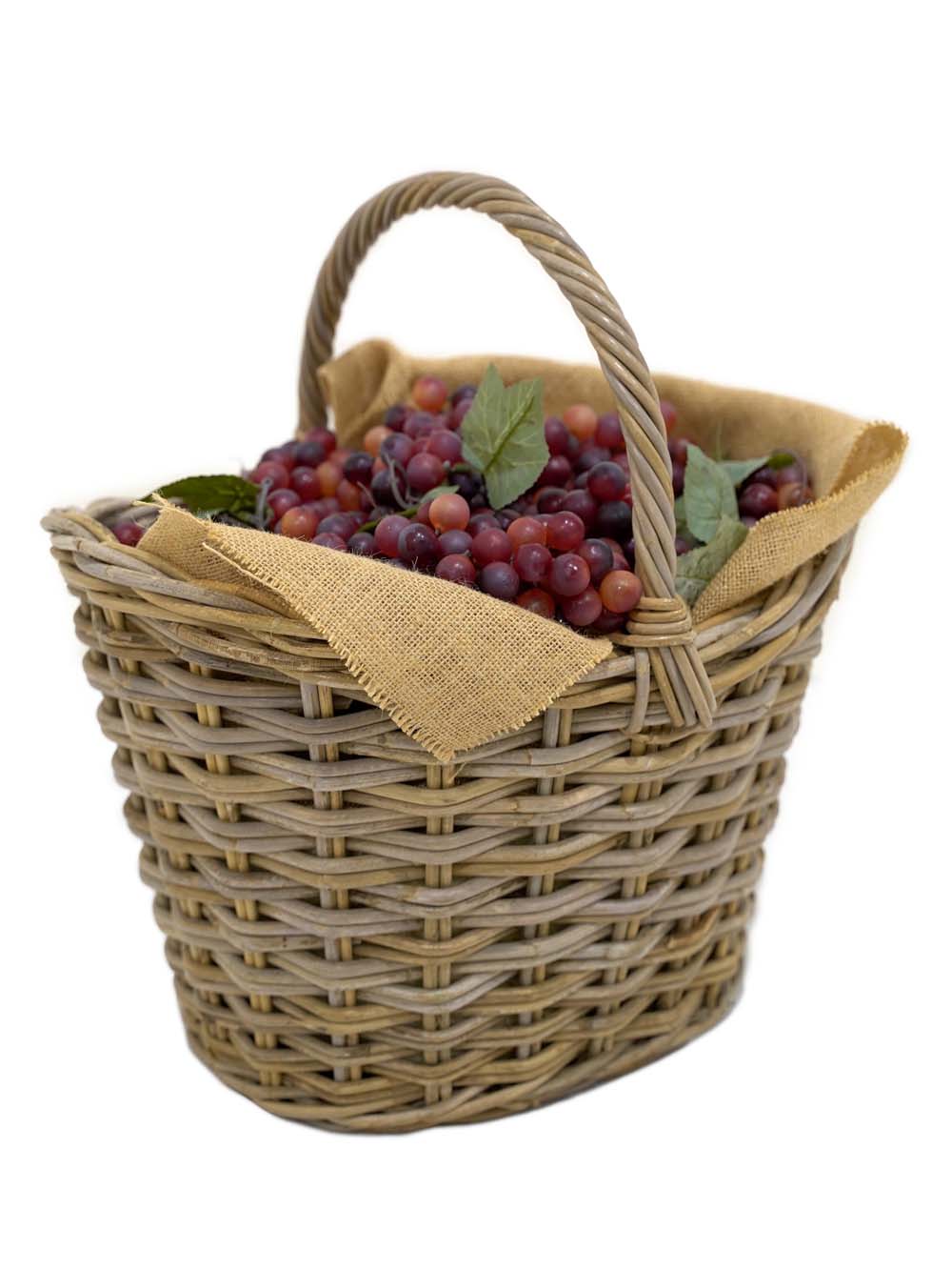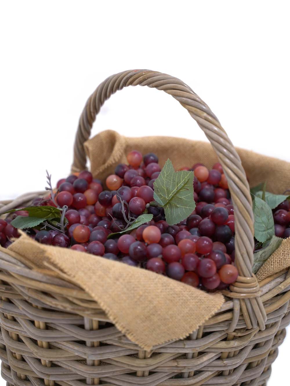 Fruit Basket – Grapes – (Style May Vary) for hire Roll up, roll up, get your fresh grapes here! Whether you’re creating a fruitful market stall, or ‘making’ (fake) wine, our basket of grapes fit the bill! Please note, the grapes come attached to the basket