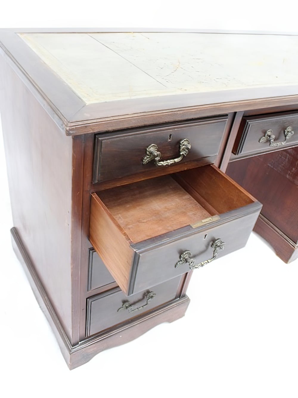 Gentleman’s Desk for hire. This is a beautiful piece of authentic furniture for hire that would really help to create the look of a Gentleman’s Club. Or perhaps use it as Father Christmas’s ย desk in his grotto? It has nine drawers, a green leather top and a dark wood finish. Why not also hire our Desktop Set (pictures opposite) to add the finishing touches to the desk?!