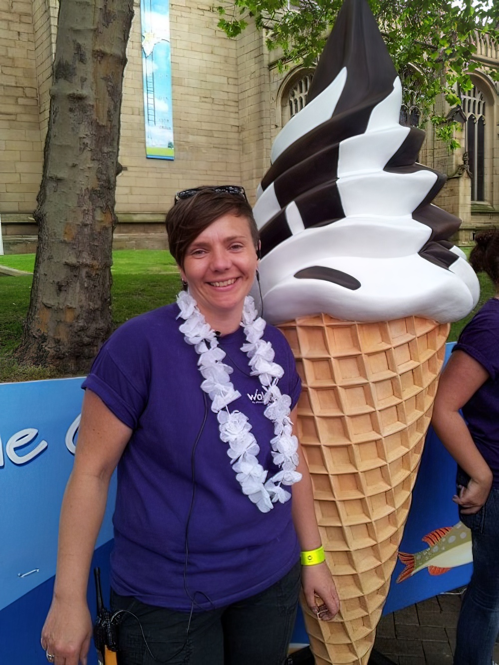 Giant 3d Ice Cream Prop to hire with chocolate brown sauce finish. Suitable for any 1950s American Diner or seaside themed event party.