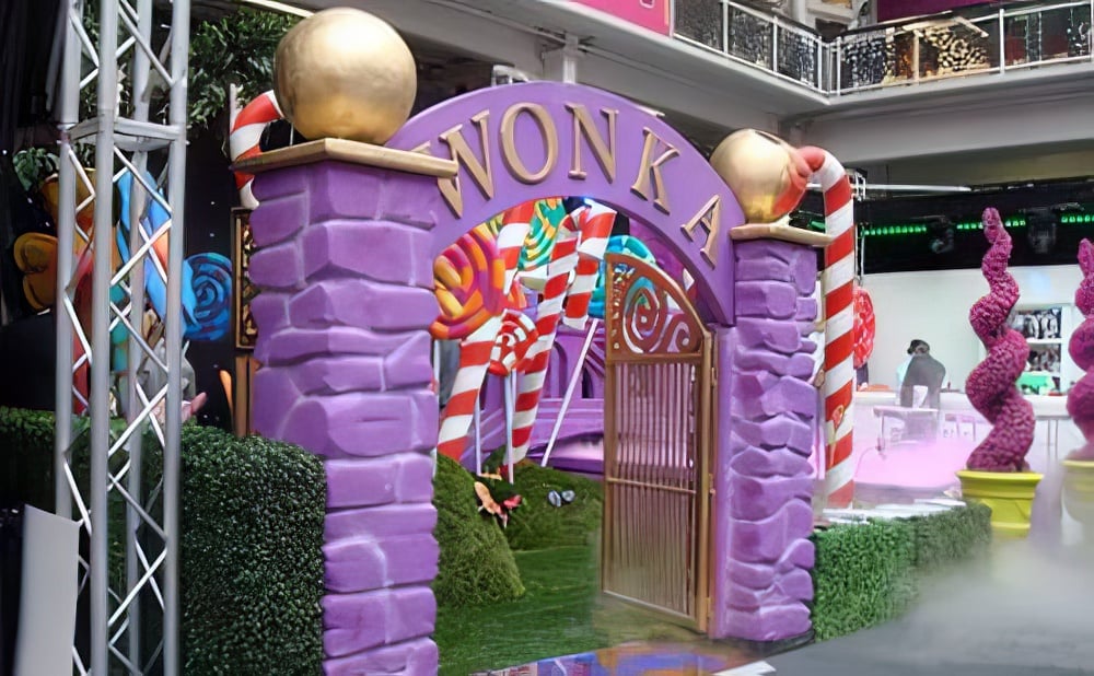Giant candy cande prop to hire. Suitable for a Charlie and the Chocolate factory themed party night event. Fully 3D and freestanding, this prop will provide great decor and decoration for your themeed event.