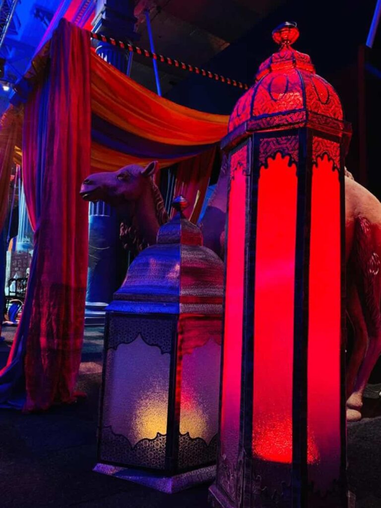 Giant Copper Lantern to hire. Crafted in a beautiful ornate copper metal, these giant lanterns will look perfect as ย theming and decor at any Moroccan or Arabian nights themed event or party night. Check out our other lanterns too ย here. Please note that the lantern does not come with lighting as standard. We think one of our colour changing ย parcan ย lights would look fantastic with this lantern (as pictured in the last pictured). If you would like to hire a wireless or mains operated light then please speak to a member of the sales team. Please note that the lantern does not come with lighting as standard. We think one of our colour changing parcan lights would look fantastic with this lantern (as pictured in the last pictured). If you would like to hire a wireless or mains operated light then please speak to a member of the sales team.