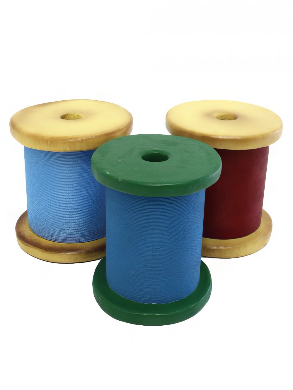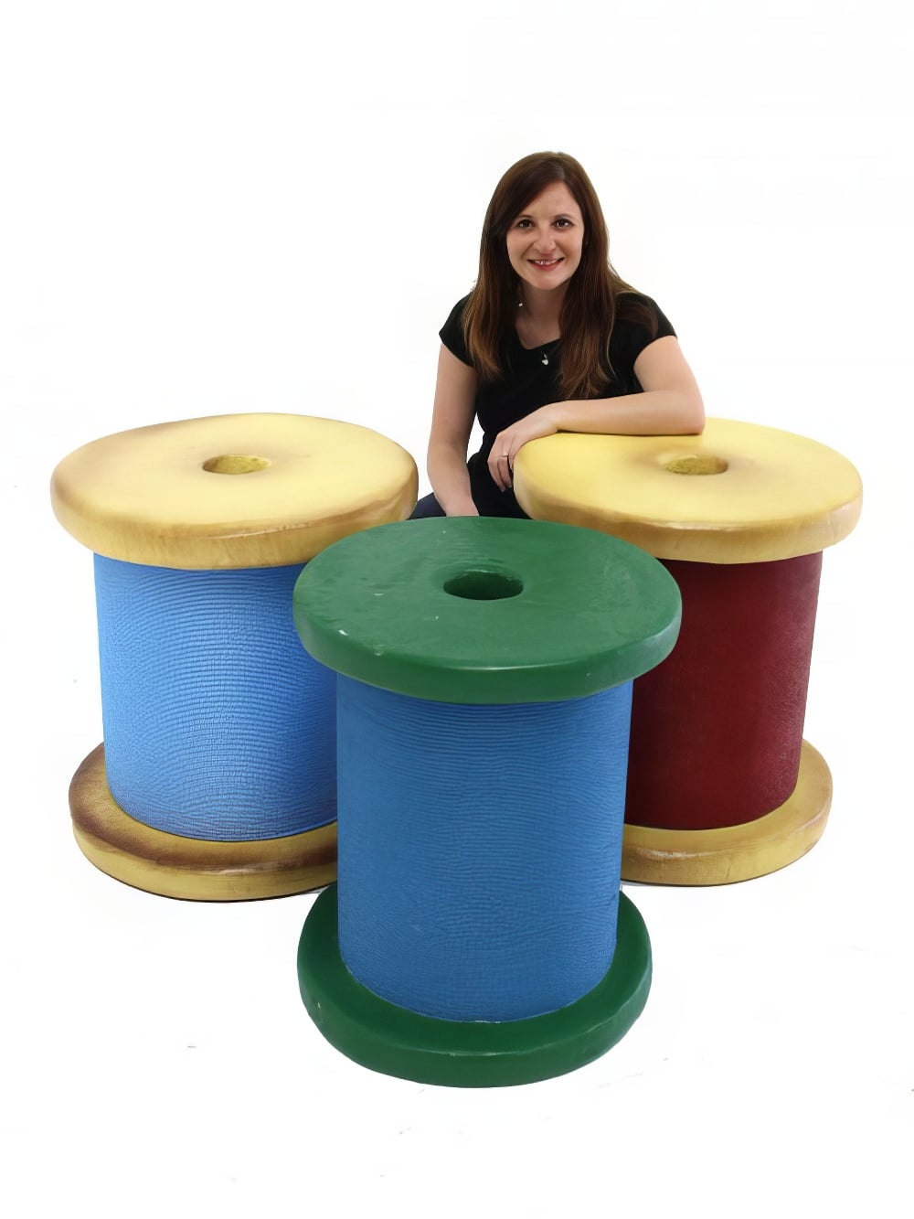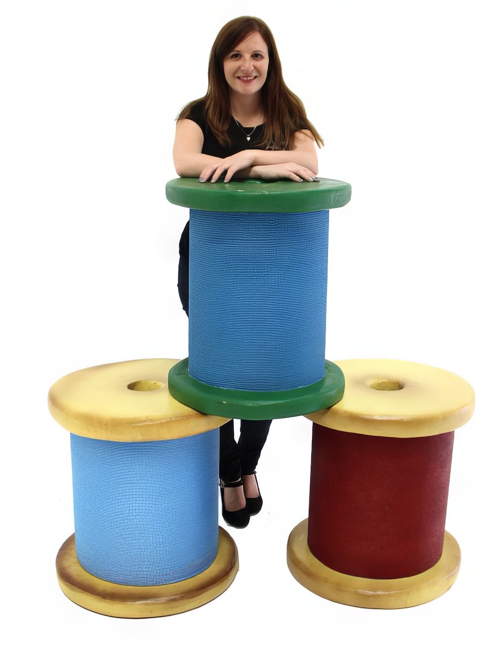 Giant Bobbins for hire. Take a look at these fabulous giant cotton reels for hire. Wrapped with a thin rope and sprayed ย gives the reels an ultra realistic thread appearance. These would be great for any fashion or carnival theme. Please note that the cotton reels vary in colour and it is not possible to specify which ย colour you will receive.