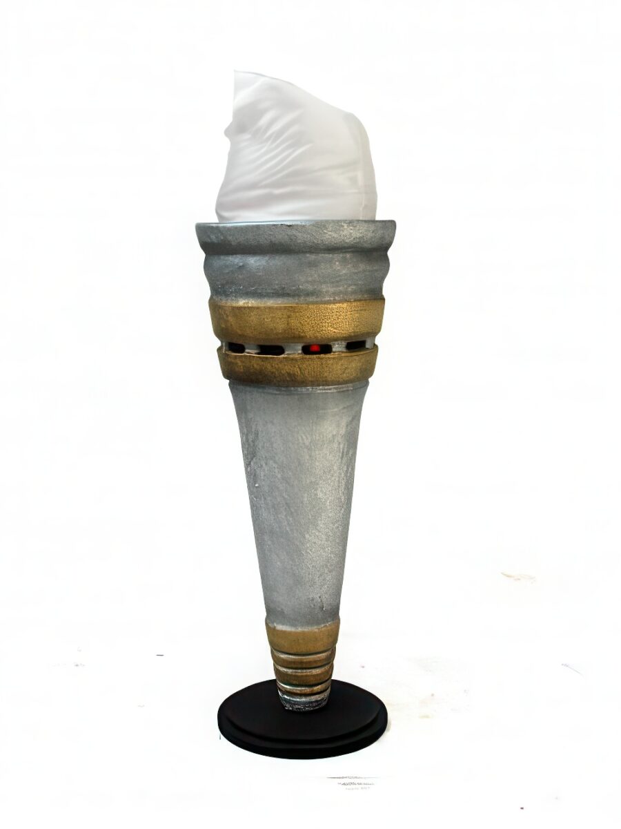 Giant Flame Torch Prop to hire. This is a versatile prop suitable for many different themes. It will look great welcoming guests to your event, whether your theme is Medieval, Egyptian, Fairytale or how about celebrating the Olympics with this fashioned as an Olympic Torch?!