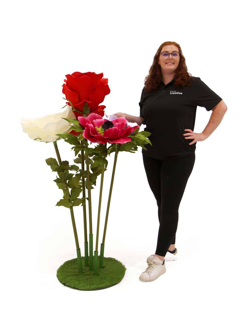 Giant Flower Display – English Country Garden, to hire. These beautiful, giant flowers are sure to add some elegance and colour to your event.