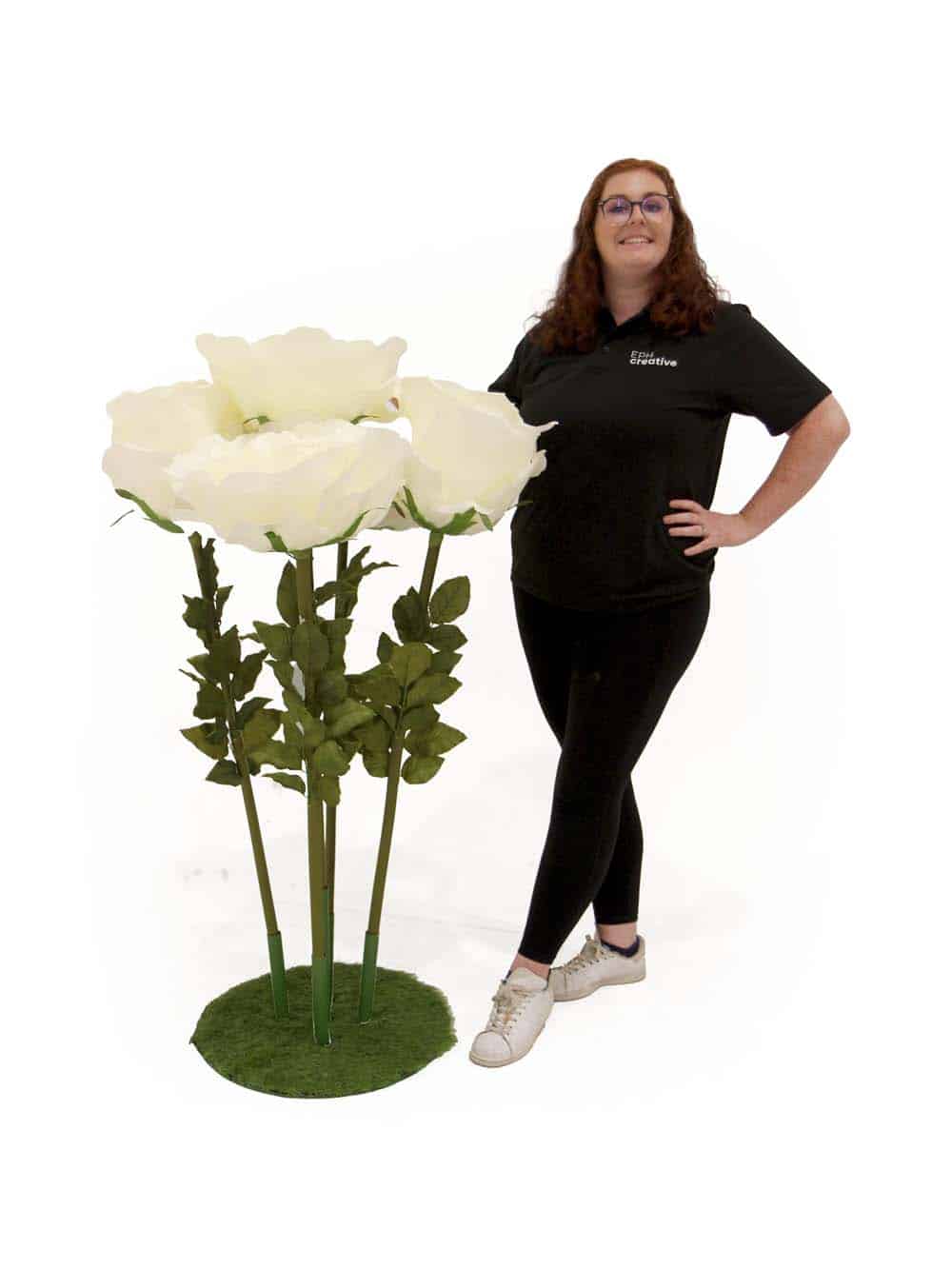 Giant Flower Display – Wedding White, to hire. These beautiful, giant flowers are sure to add some elegance to your event.