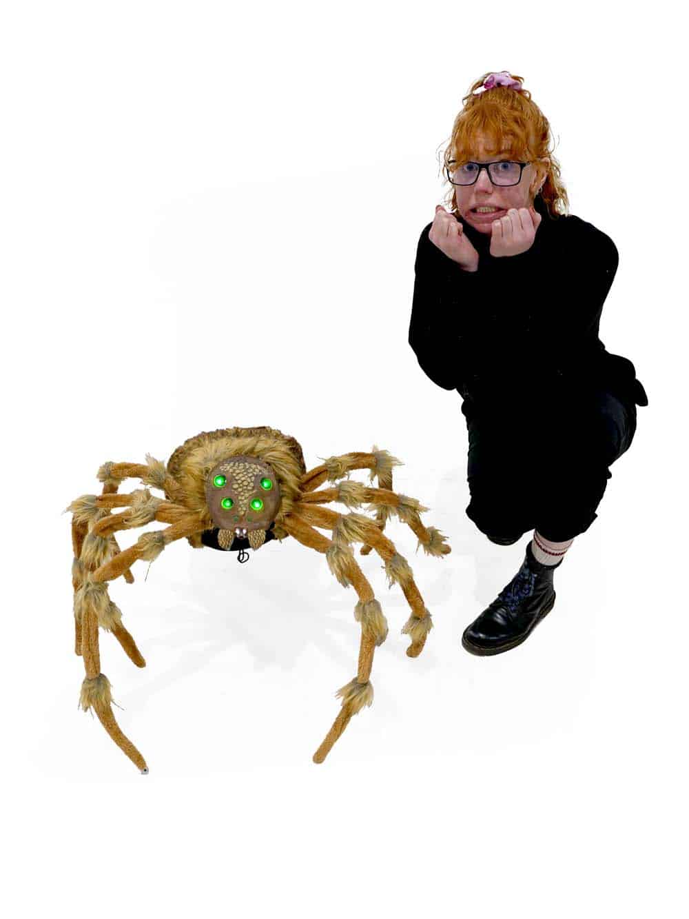 Giant Light Up Spider for hire. Featuring green light-up eyes with a hidden battery pack, this spider can also be hung by the handy loop on its back.