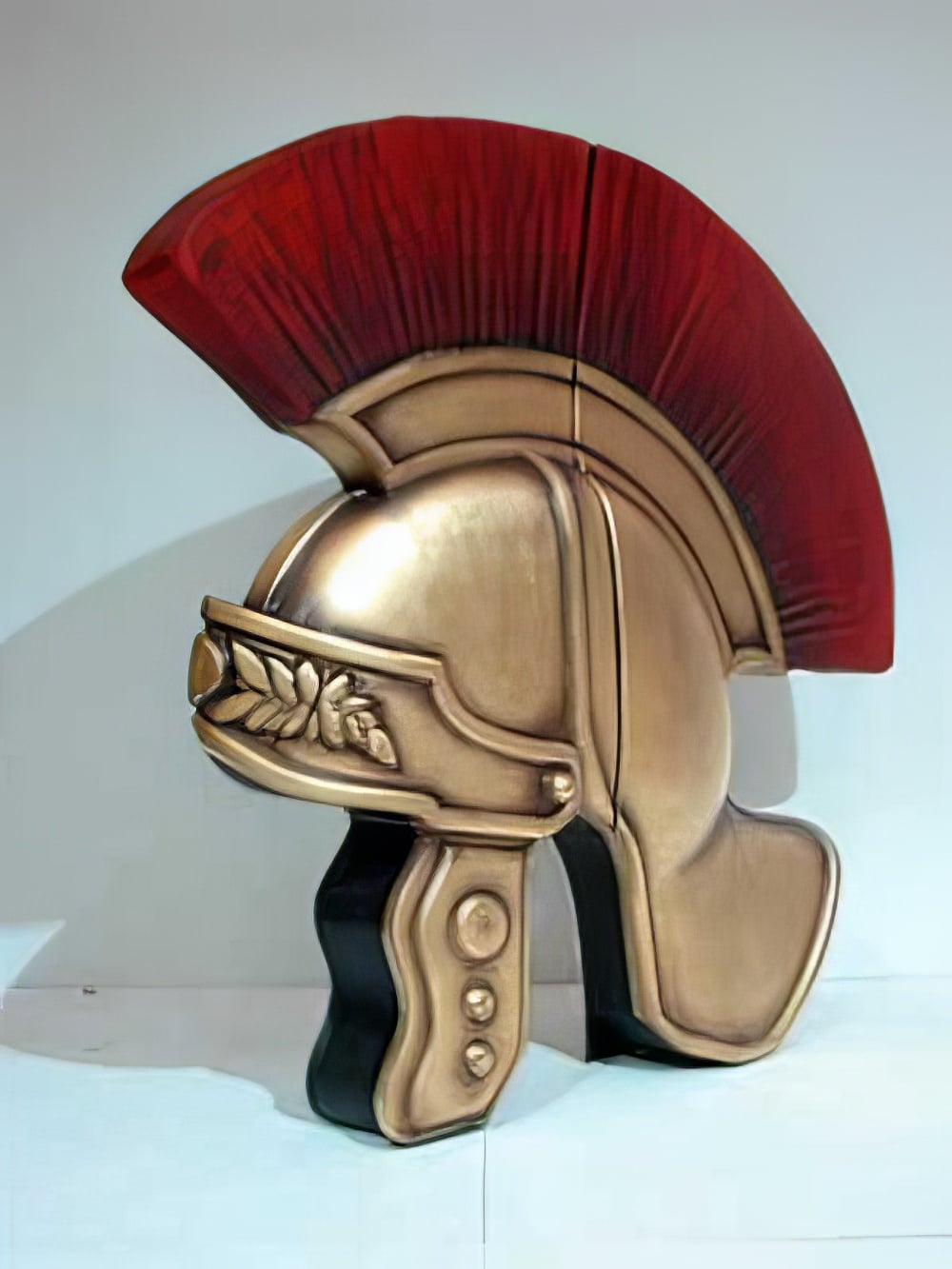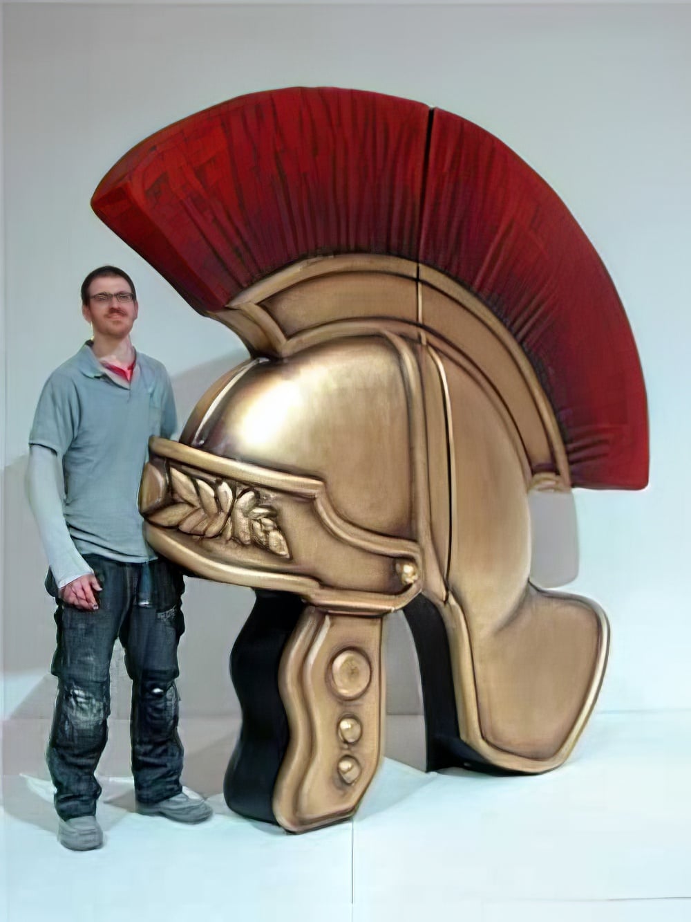 A fantastically detailed and giant 3d freestanding Roman Helmet! Prop breaks down into two for easy installation and de-rig.