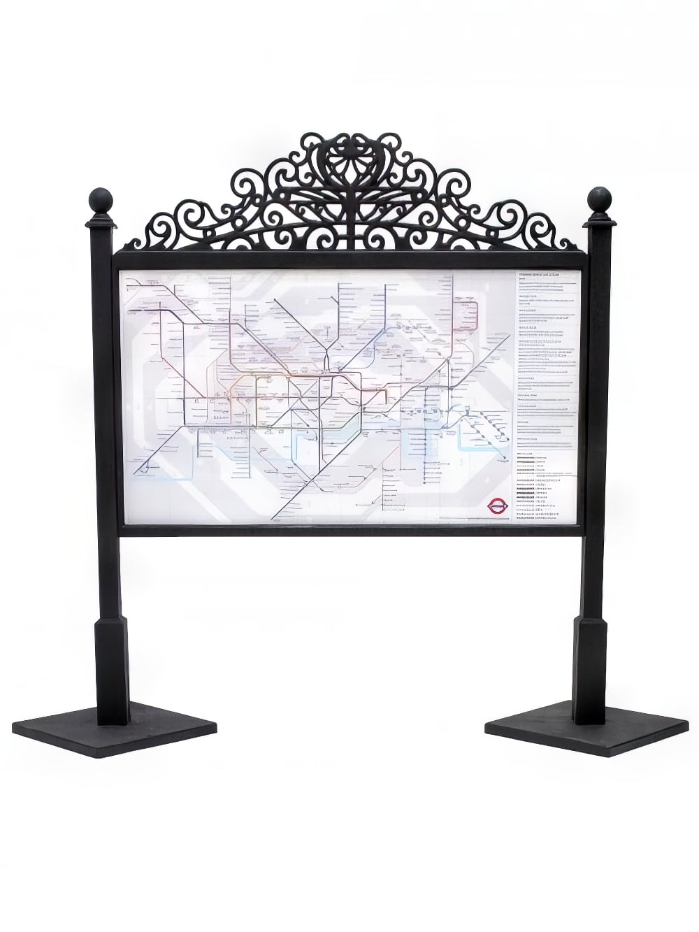 Giant Tube Map for hire. Here is a lovely freestanding wrought iron effect sign that is shown displaying a map of the London Underground network.