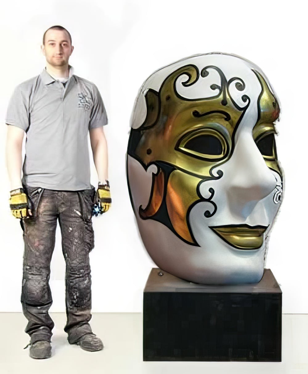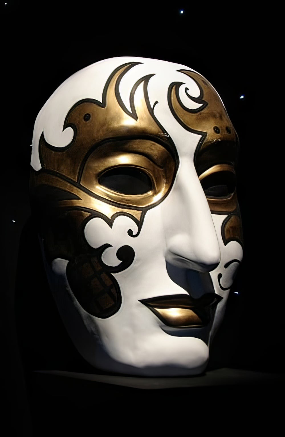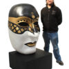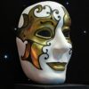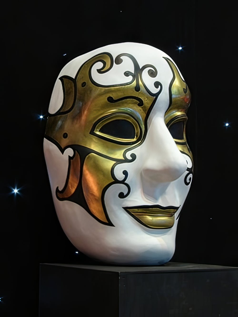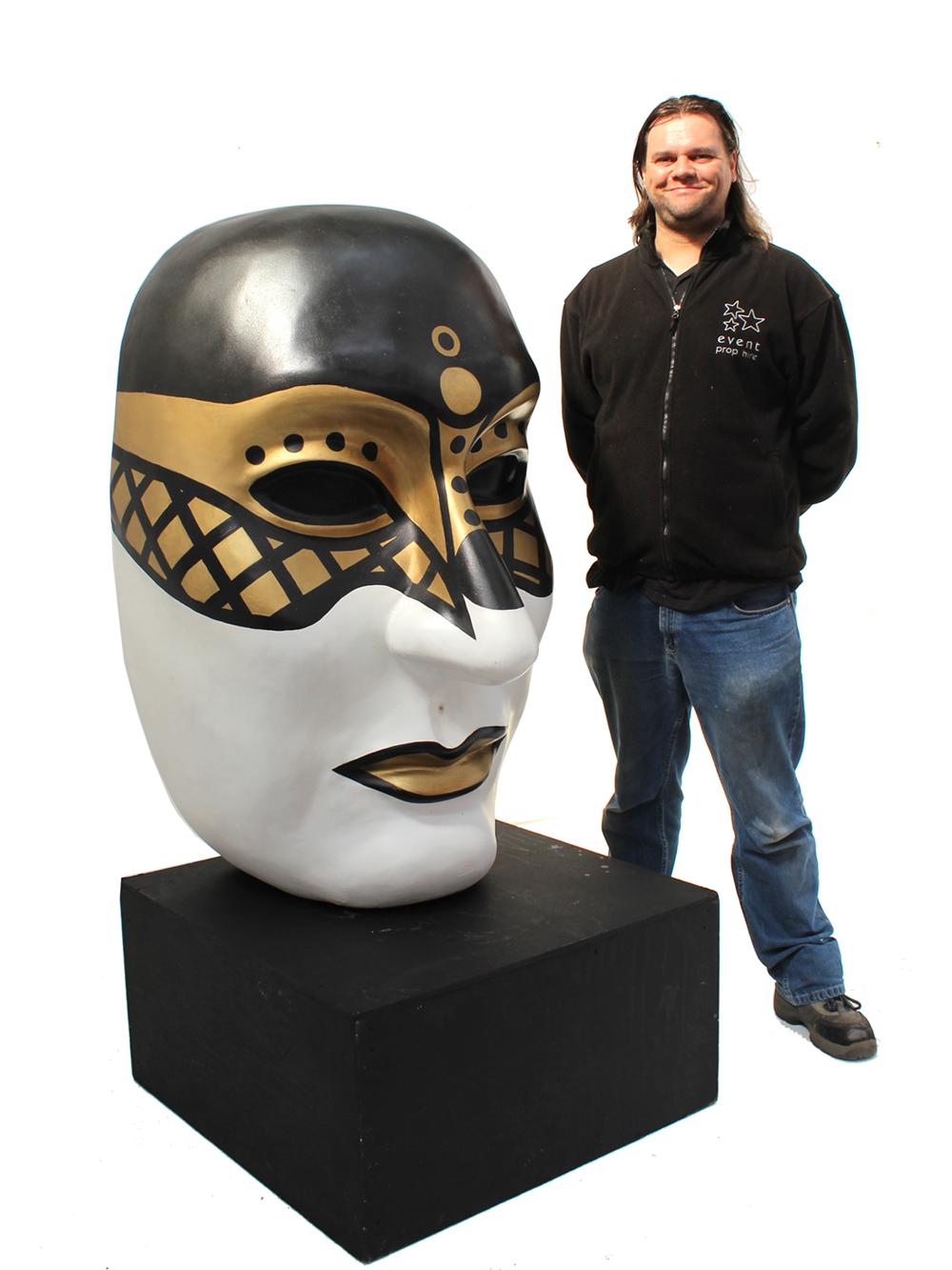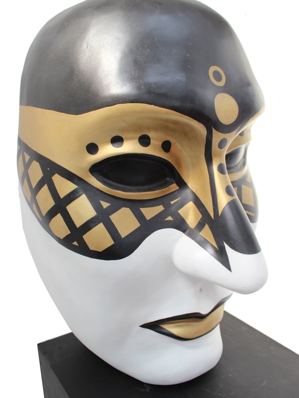 This is a fantastic hand sculpted and painted Venetian Face for hire; a classic demonstration of the quality of the props that we build in house. Our Venetian masks come seated securely on a plinth and we have four slightly different variations. Please note that the masks all vary slightly and so the face artwork of this prop may vary from that depicted.