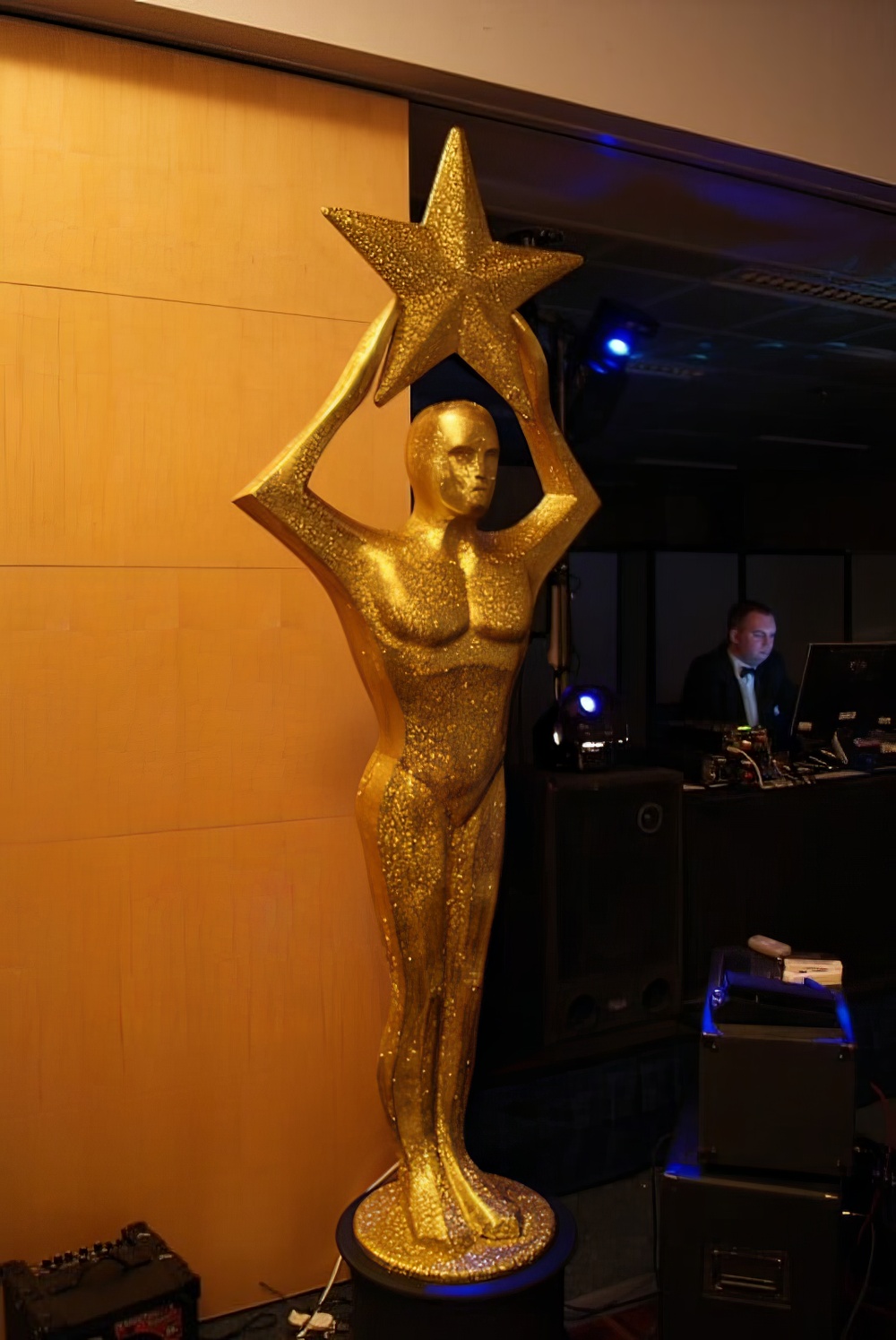 Giant Gold Star Award Statue Prop to hire. This giant gold award statue prop is perfect prop to ย hire for any ย Award party or ย themed event!