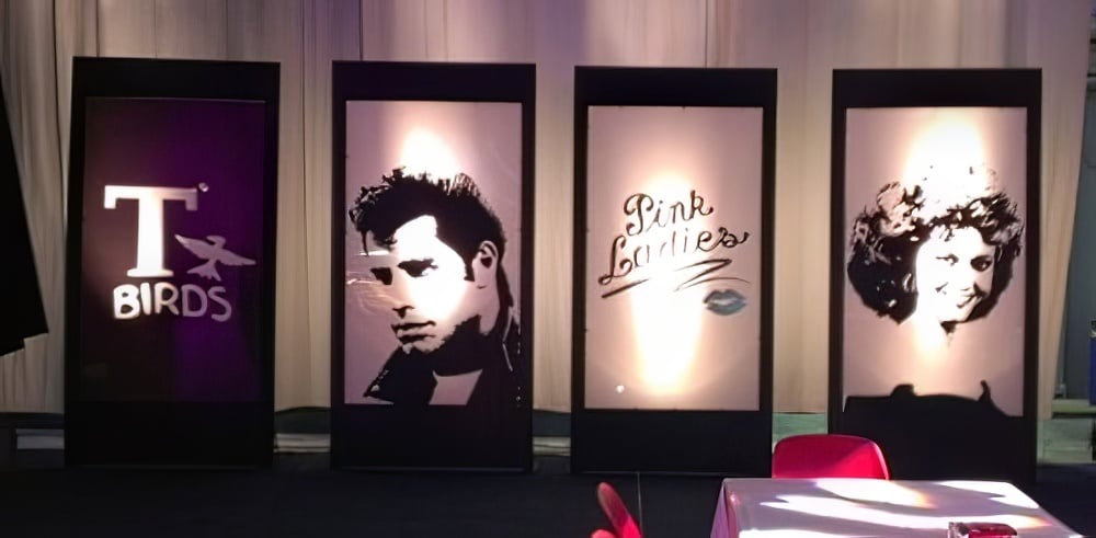 Grease silhouette prop to hire depicting the famous danny. This prop is suitable for any Grease themed party night event and provides great event theming and decor when used in conjunction with our Sandy silhouette panel prop. This prop, along with our other Grease themed props to hire is perfect for any Grease themed party event. All our silhouette panels come supplied with lighting. Lighting colour may vary from that shown.