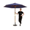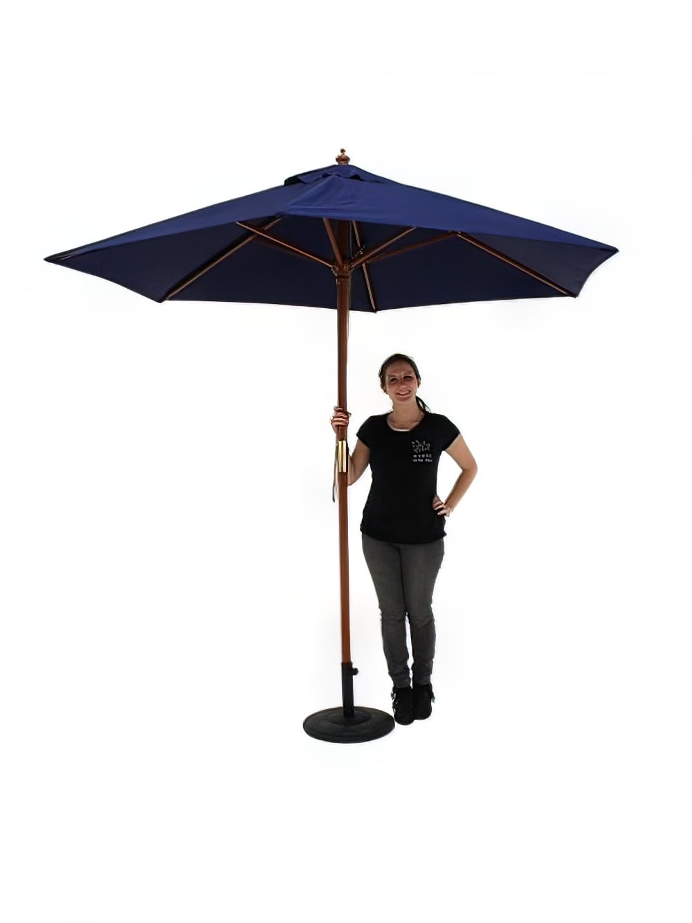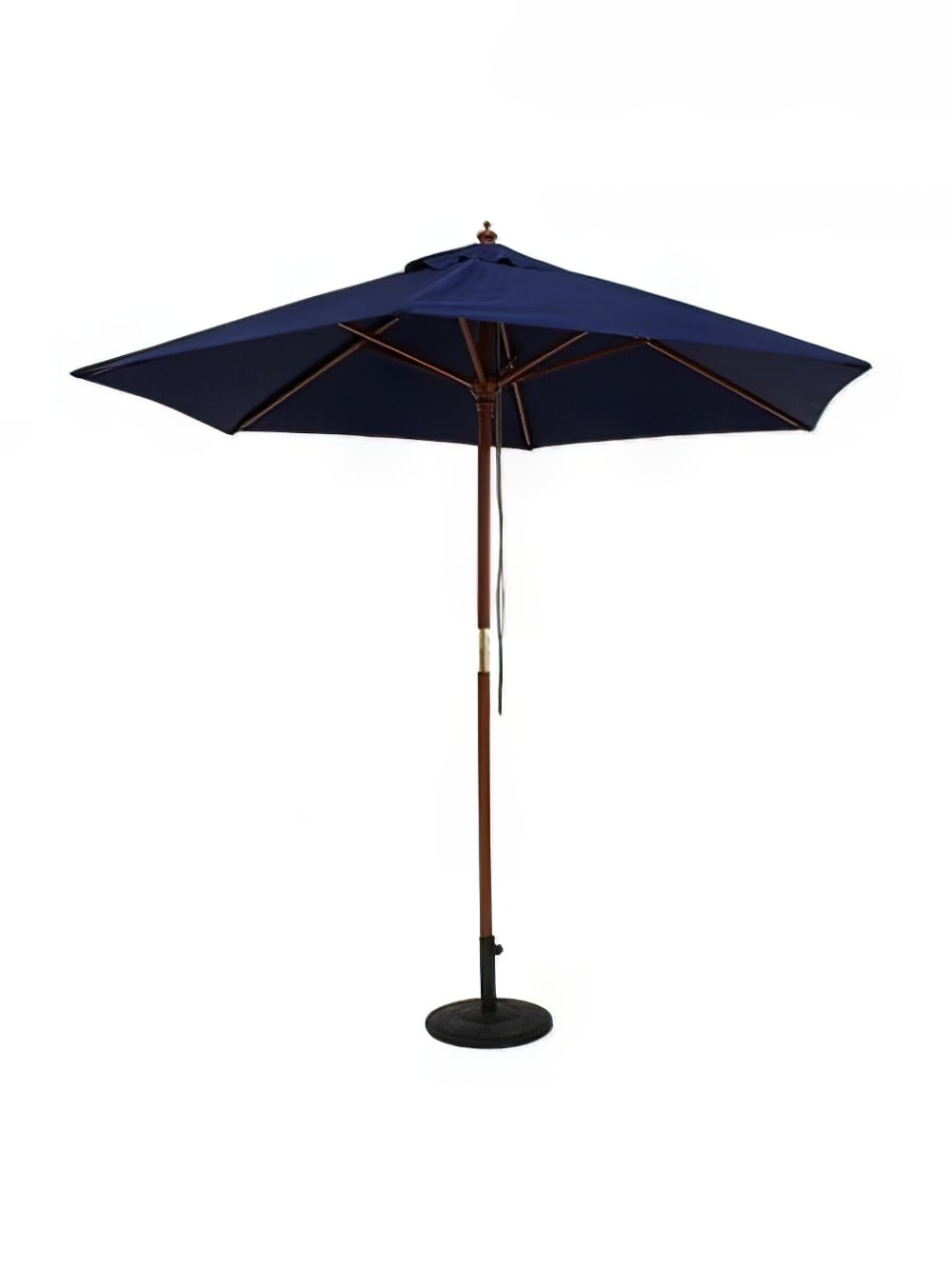 Hexagonal Parasol in Blue to hire. Hexagonal in shape and 2m wide this is a quality product, constructed with a heavy duty wooden frame and a water resistant canopy. Simply pull the cord, place the pin in the hole and your parasol is ready for your event!