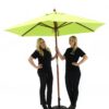 Hexagonal Parasol in Green to hire. This beautiful bright green parasol will definitely provide a splash of colour that will brighten up your event or party. Hexagonal in shape and 2m wide this is a quality product, constructed with a heavy duty wooden frame and a water resistant canopy. Simply pull the cord, place the pin in the hole and your parasol is ready for your event!