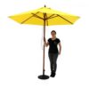 Hexagonal Parasol in Yellow to hire. This beautiful bright yellow parasol will definitely provide a splash of colour that will brighten up your event or party. Hexagonal in shape and 2m wide this is a quality product, constructed with a heavy duty wooden frame and a water resistant canopy. Simply pull the cord, place the pin in the hole and your parasol is ready for your event!